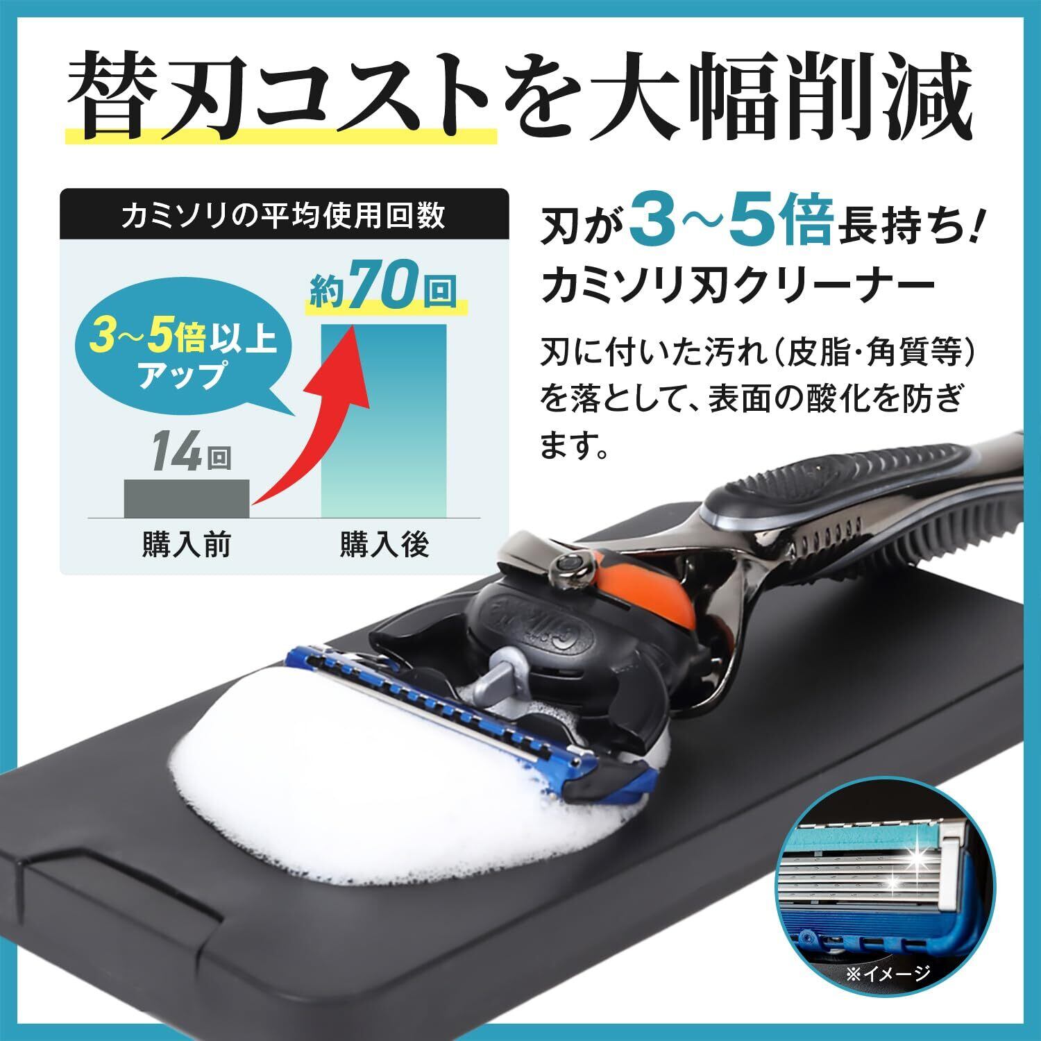 【新しくなって登場】カミソリ 刃を最大3倍~5倍長持ちさせ、替え刃コストを大幅に削減できる最新のカミソリ刃クリーナー。日本語説明付き。