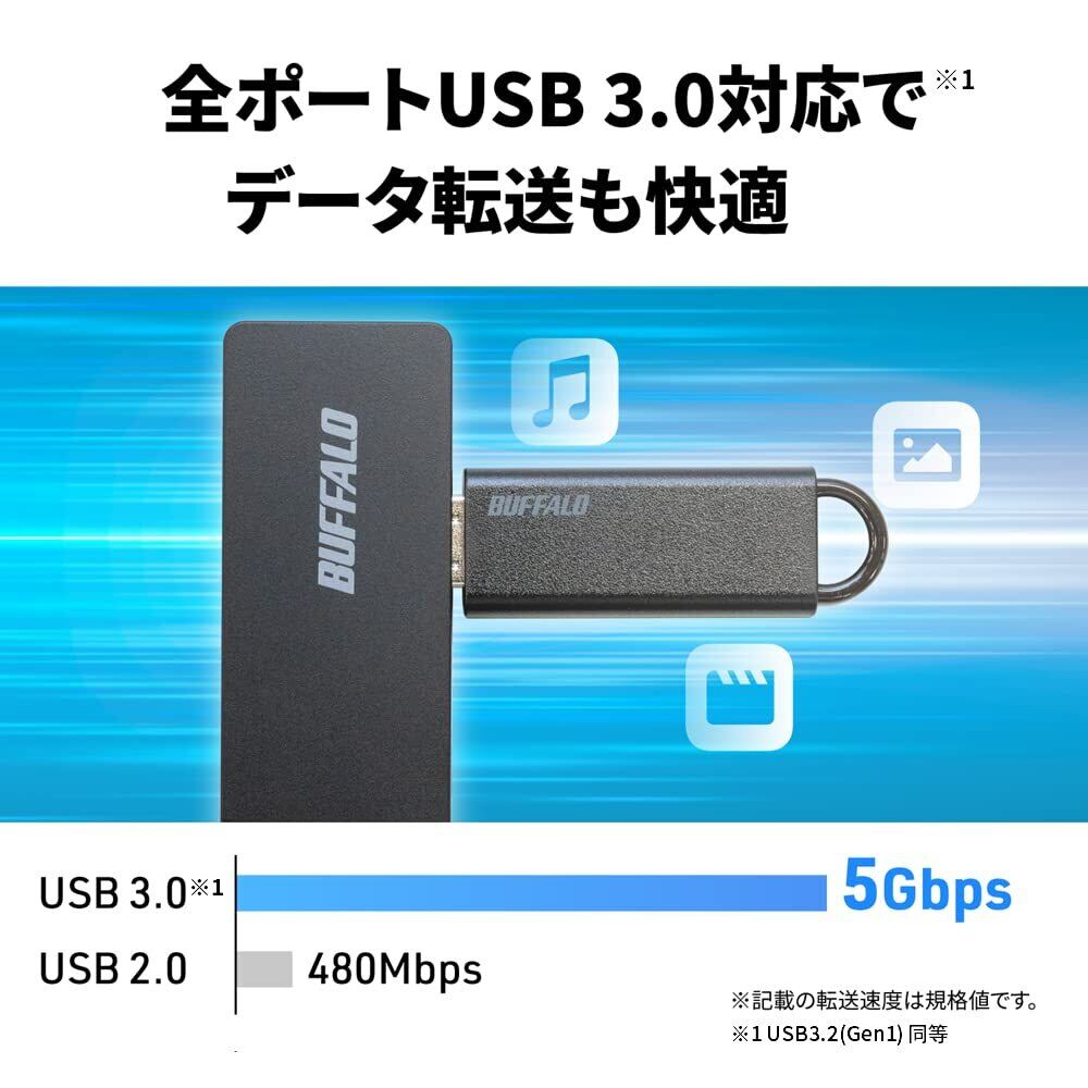 バッファロー USB ハブ USB3.0 スリム設計 4ポート バスパワー 軽量 Windows Mac PS4 PS5 Chromebook 対応 テレワーク 在宅勤務 BSH4U125U3BK