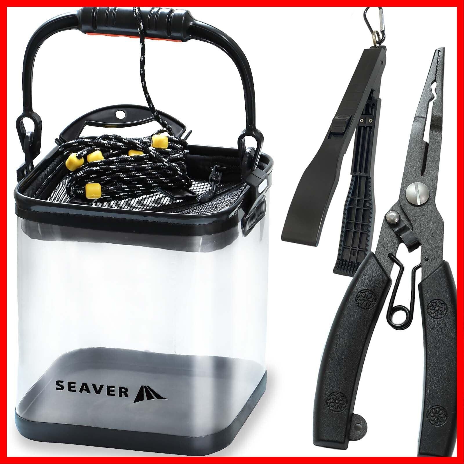 釣り バケツ 透明 選べる 3点セット 【魚が一目瞭然】 釣り道具 水汲み 折りたたみ プライヤー フィッシュグリップ 20cm 24cm SEAVER(シーバー)