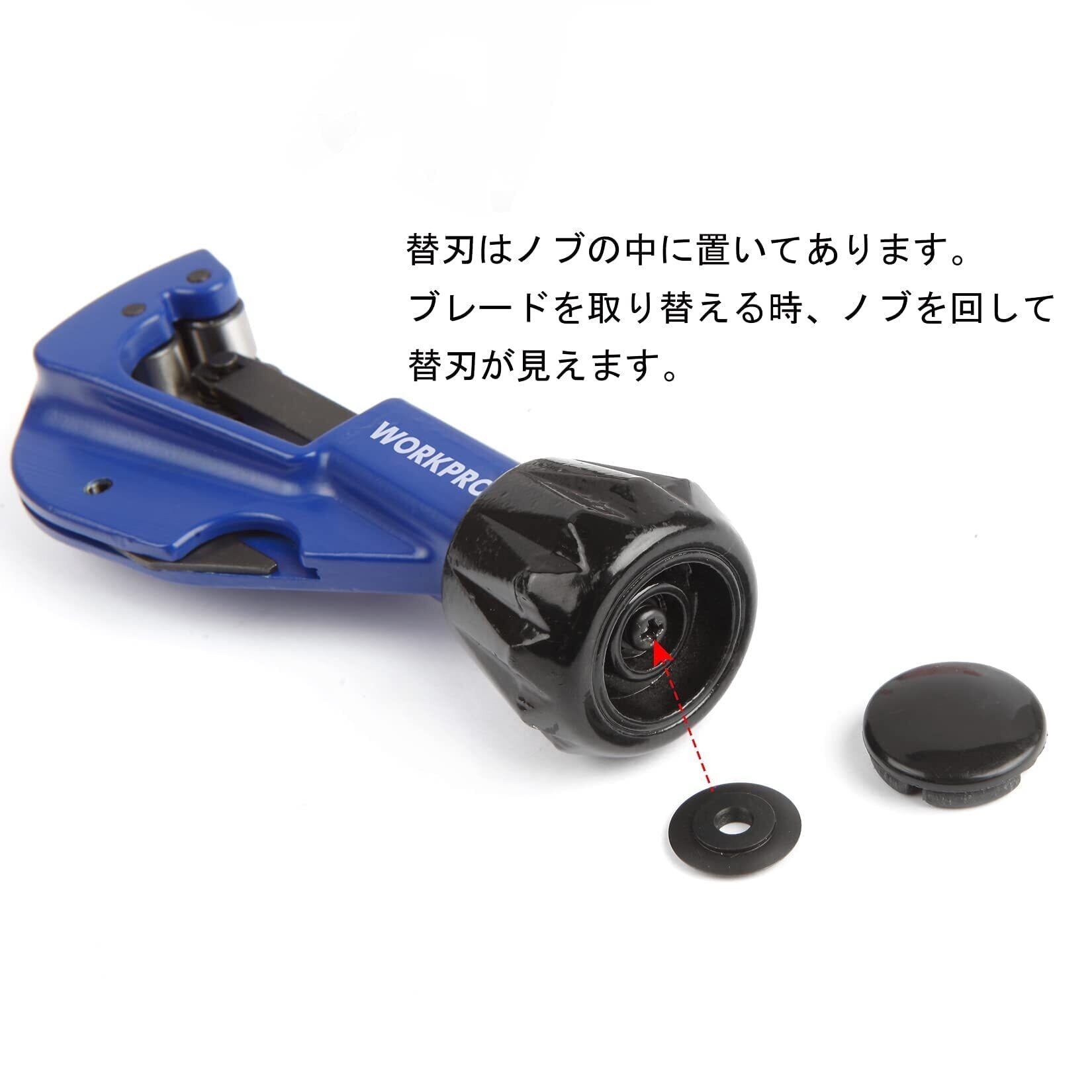 WORKPRO パイプカッター チューブカッター 切断能力3~32mm バリ取り機能付き 亜鉛合金ボディー 合金鋼ブレード 銅・アルミ・塩ビ管対応可能【 替刃1枚がノブに内蔵】