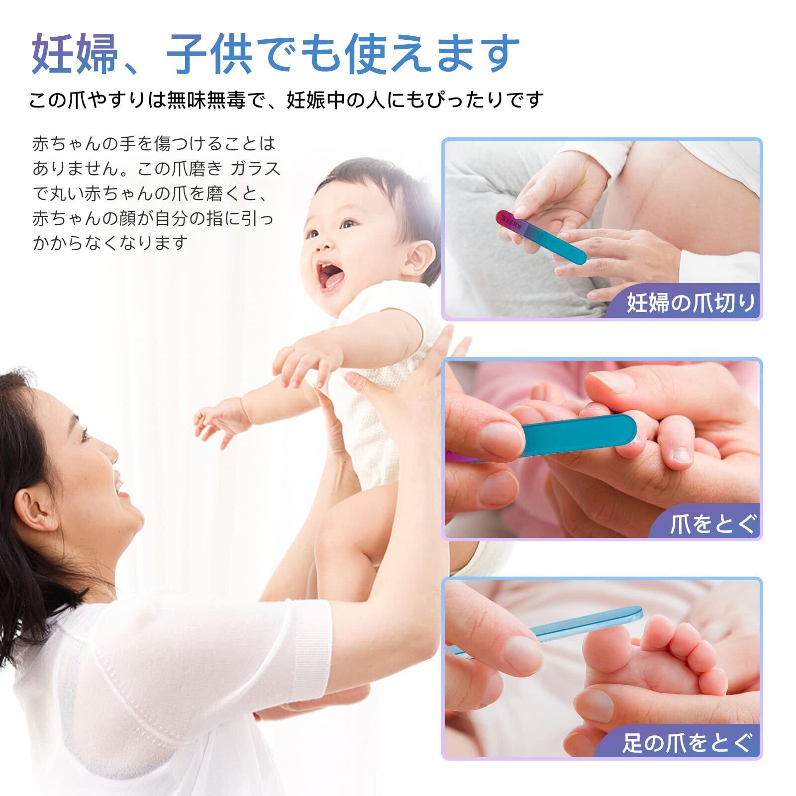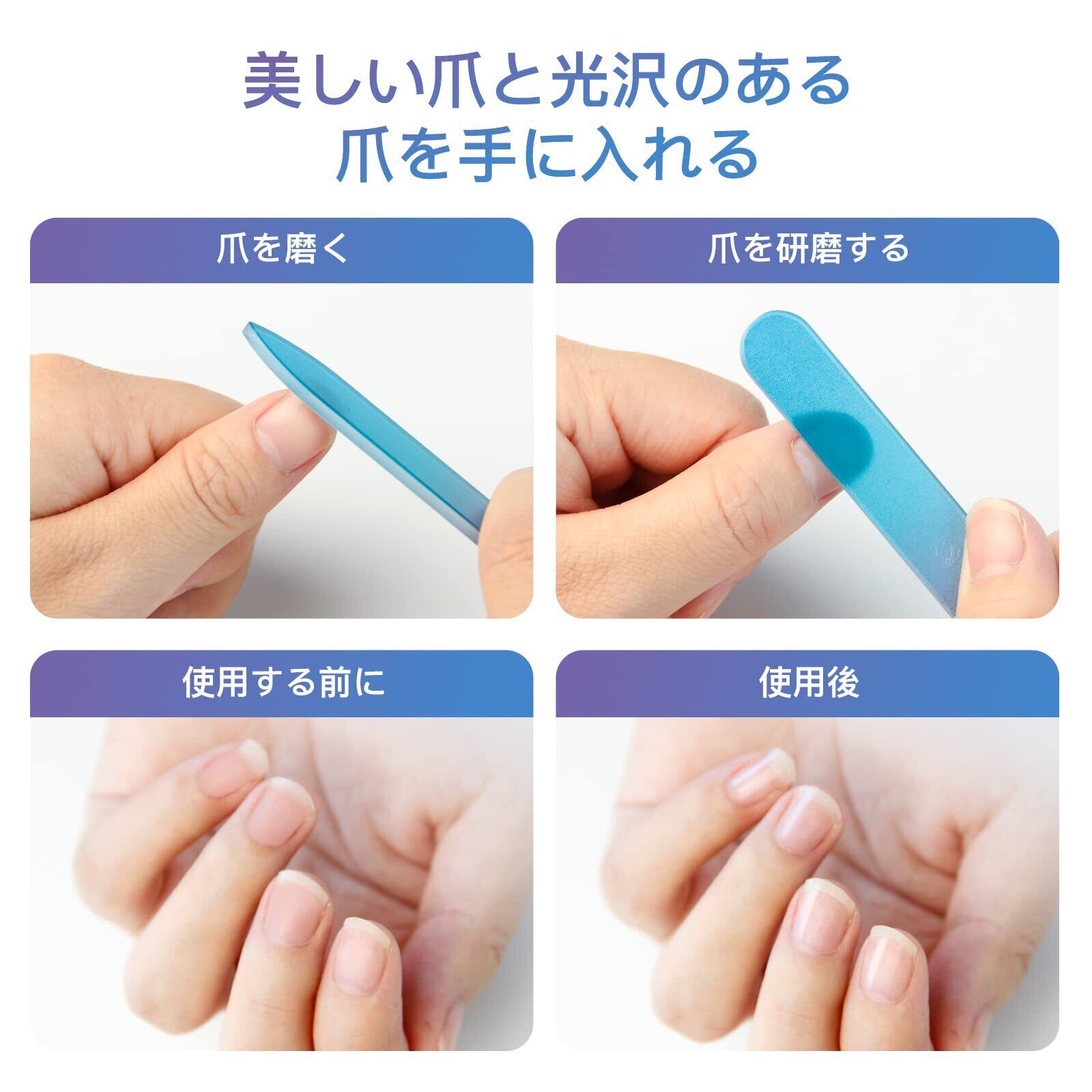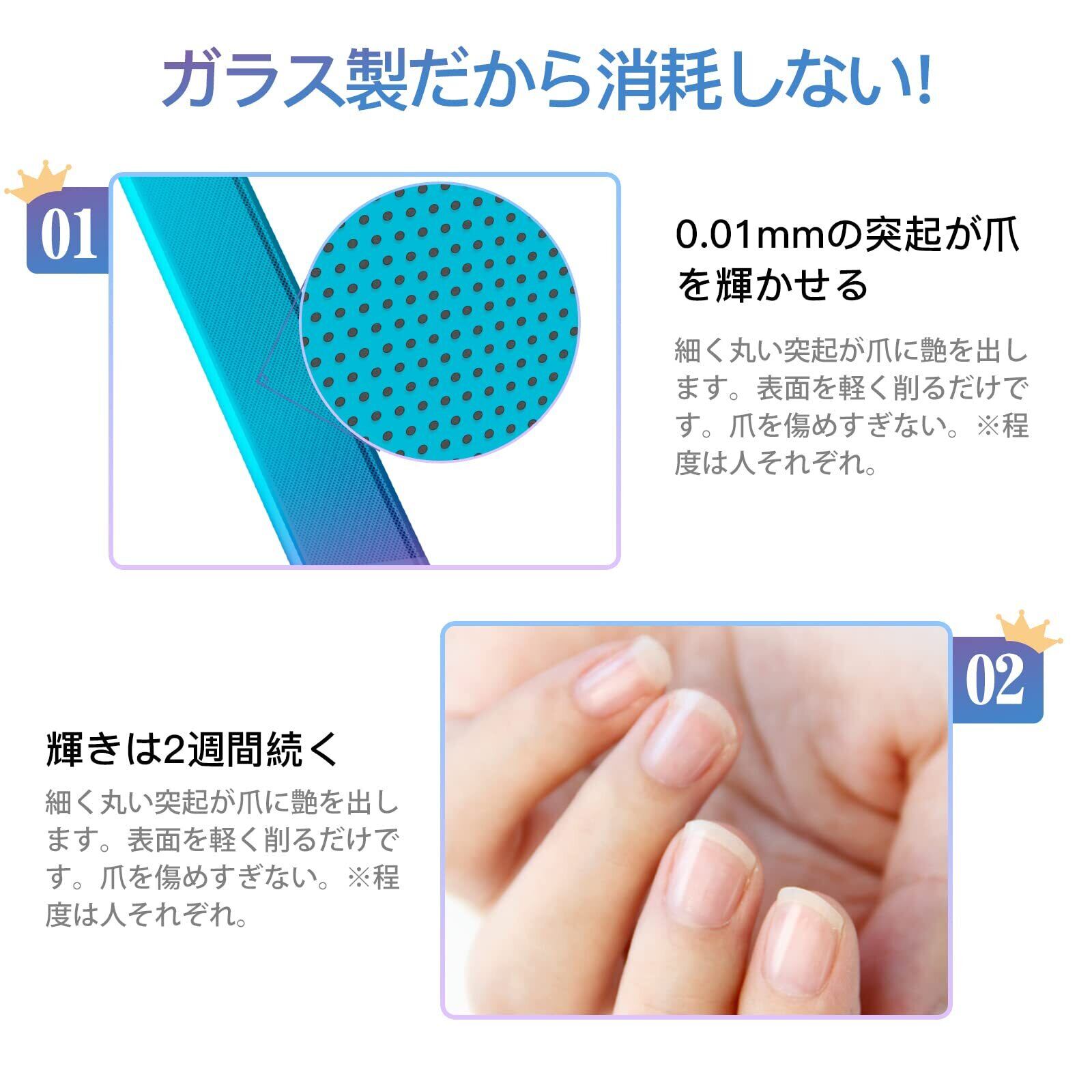 【エコで安全な爪やすり ガラス】この爪 磨きはガラスで作られ、物理的な研磨原理を利用して、最も健康な研磨爪を達成して、ピカピカで滑らかな艶を出す。よく見られる金属爪やすりが爪の表面に与えるダメージはありません。化学マニキュアが不要で健康です。臭いもなく、肌に刺激もなく、皮膚科医が極力おすすめている無害なネイルツールため、妊婦さん 、ギザギザ爪がすぐ伸びてくる赤ちゃん、職業上マニキュアができない方や男性にもお薦めです。※爪に縦ジマや凹凸がある場合はネイルファイルやネイルバッファーで下処理をしておくと均一に磨けます。輝きの持続期間は利用環境や個人差によって異なります。