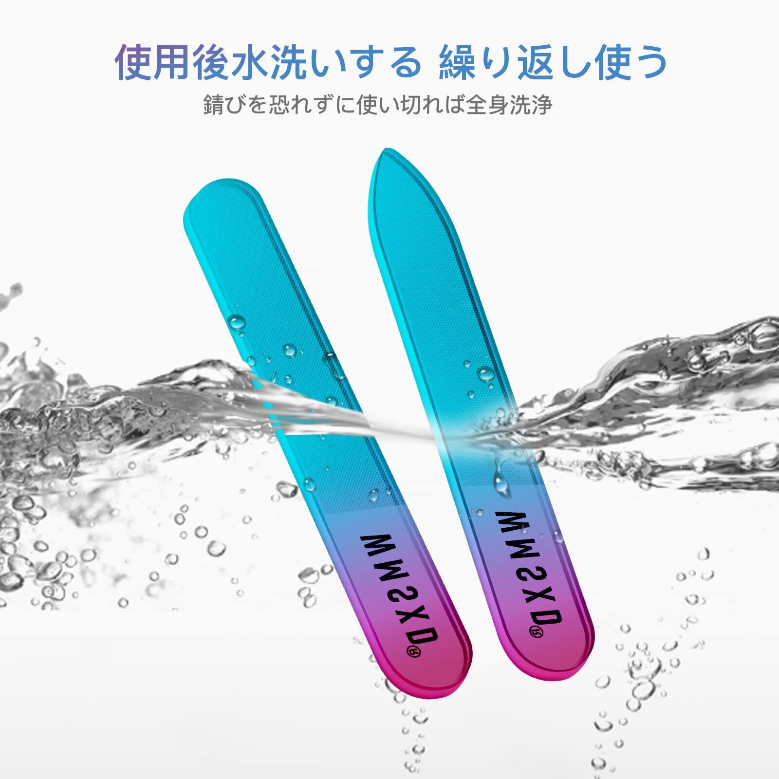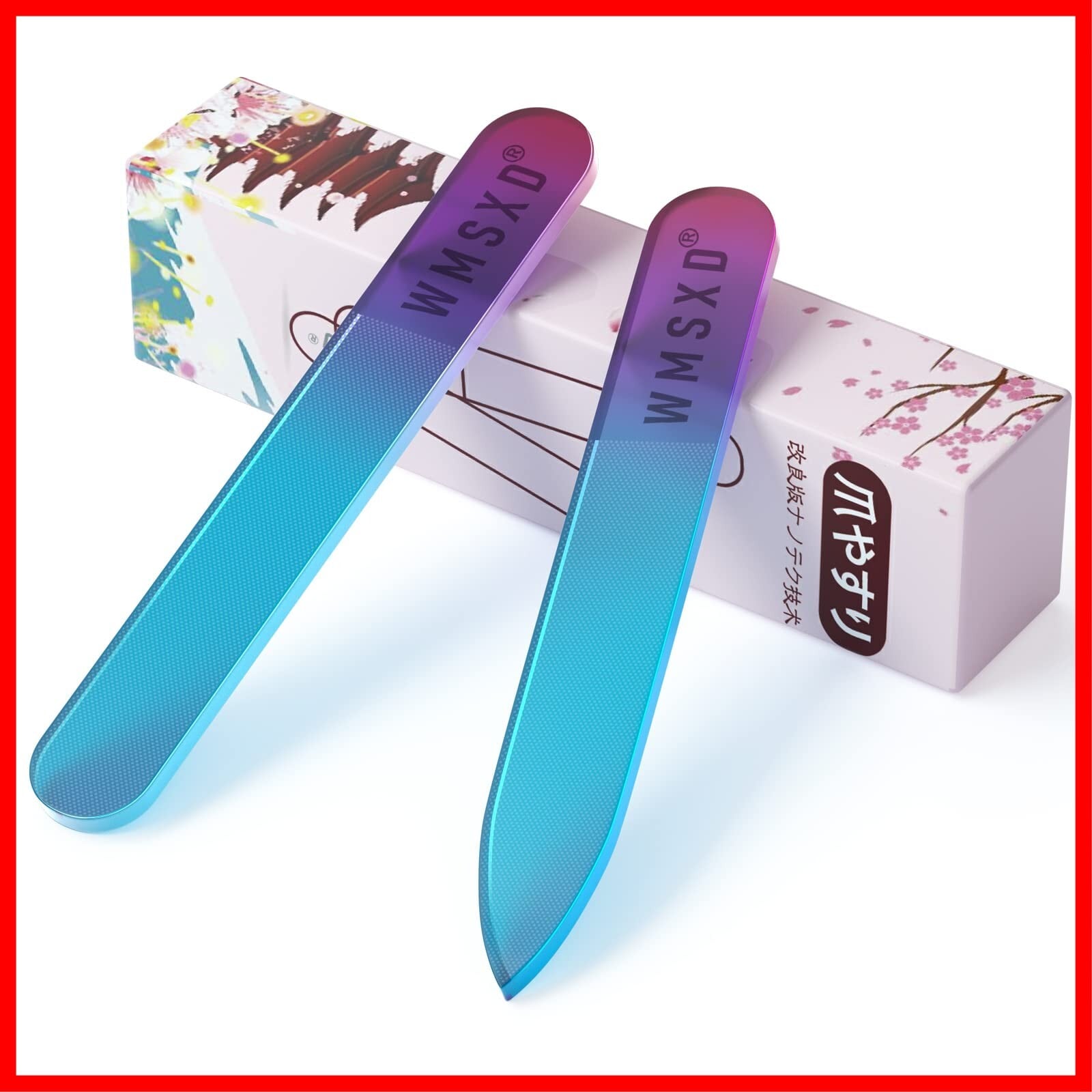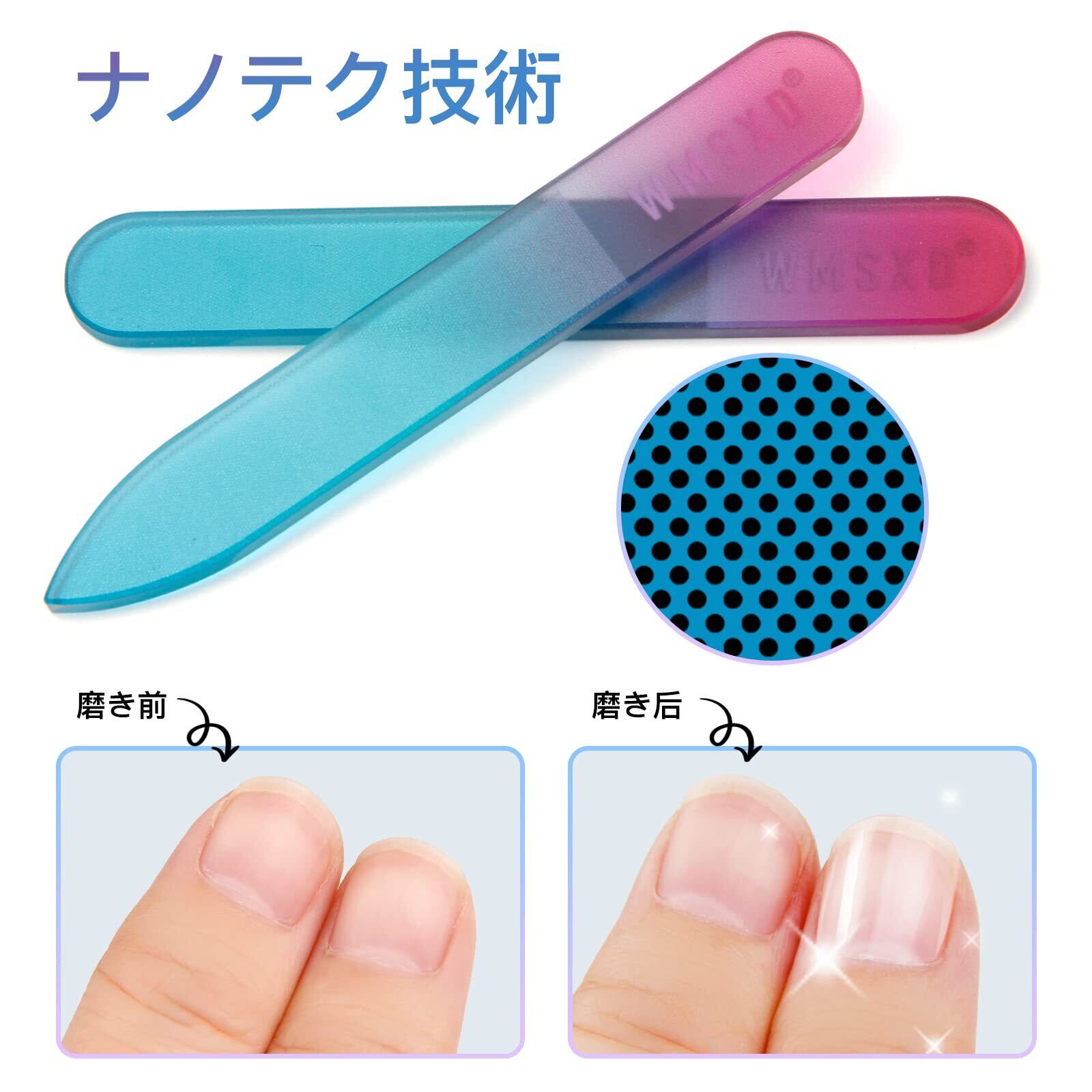 wmsxd 爪やすり 爪磨き つや出し ガラス製 つめみがき ネイルケア 人気 ランキング ツメ磨き 介護 子供 つめ お手入れ つめ磨き 携帯 ケース付 (2個セット)