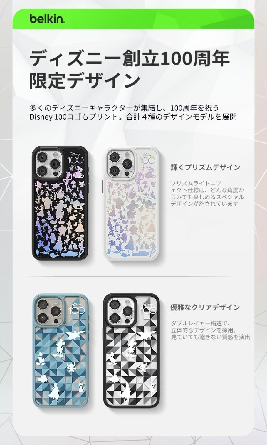 【ディズニー創立100周年限定モデル】Belkin iPhone 14 Pro Max用ケース MagSafe対応 マグネット搭載 薄型 超耐衝撃 UV耐性 黄ばみ防止 ソフトTPU ブラック MSA011qcDG-DY