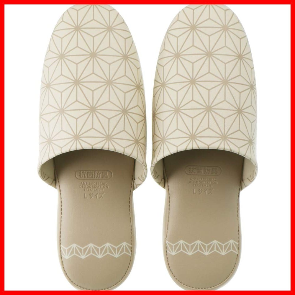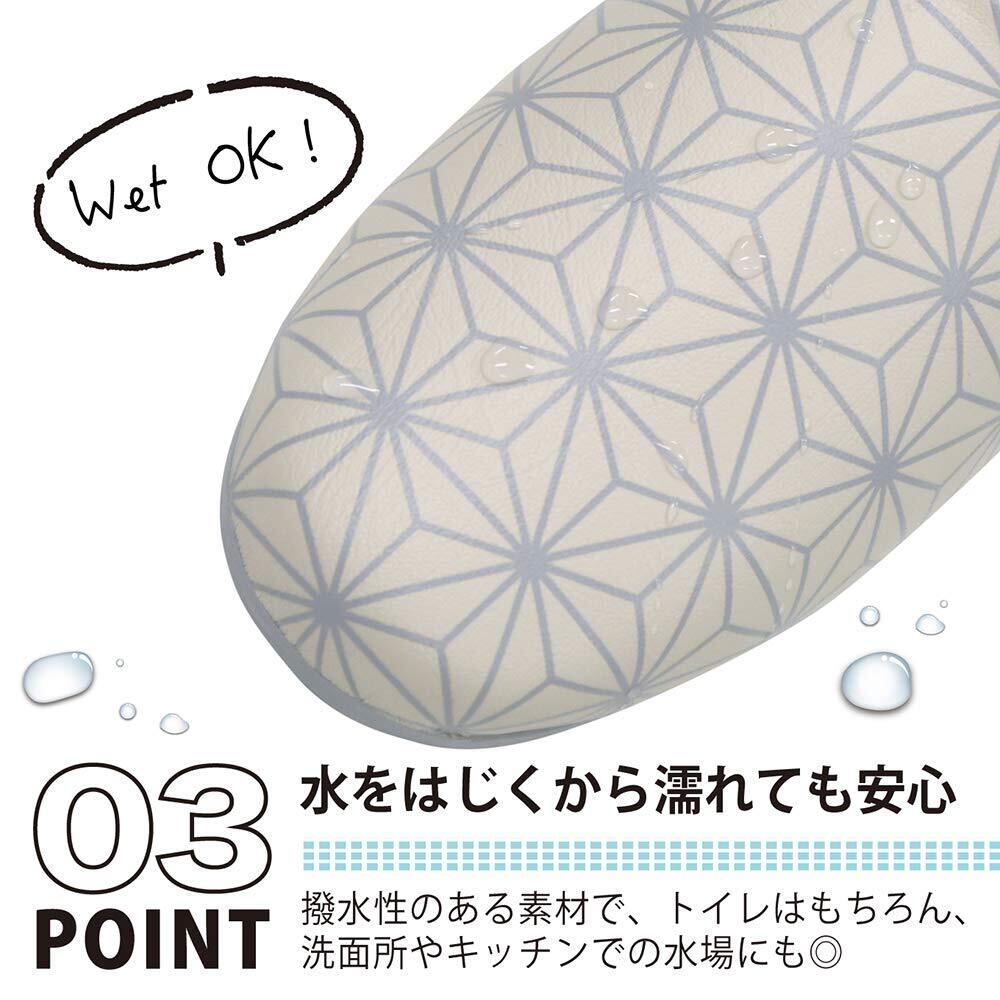 【和モダンな麻格子柄】古風な和柄の麻格子をプリント。色目が明るくモダン仕様で様々なインテリアシーンにマッチ。ビニール地にプリントした前かぶりタイプのスリッパです。ご自宅だけでなく会社や施設などのトイレにもおすすめです。水をはじくため、洗面所やキッチンなどの水場でも活躍します。