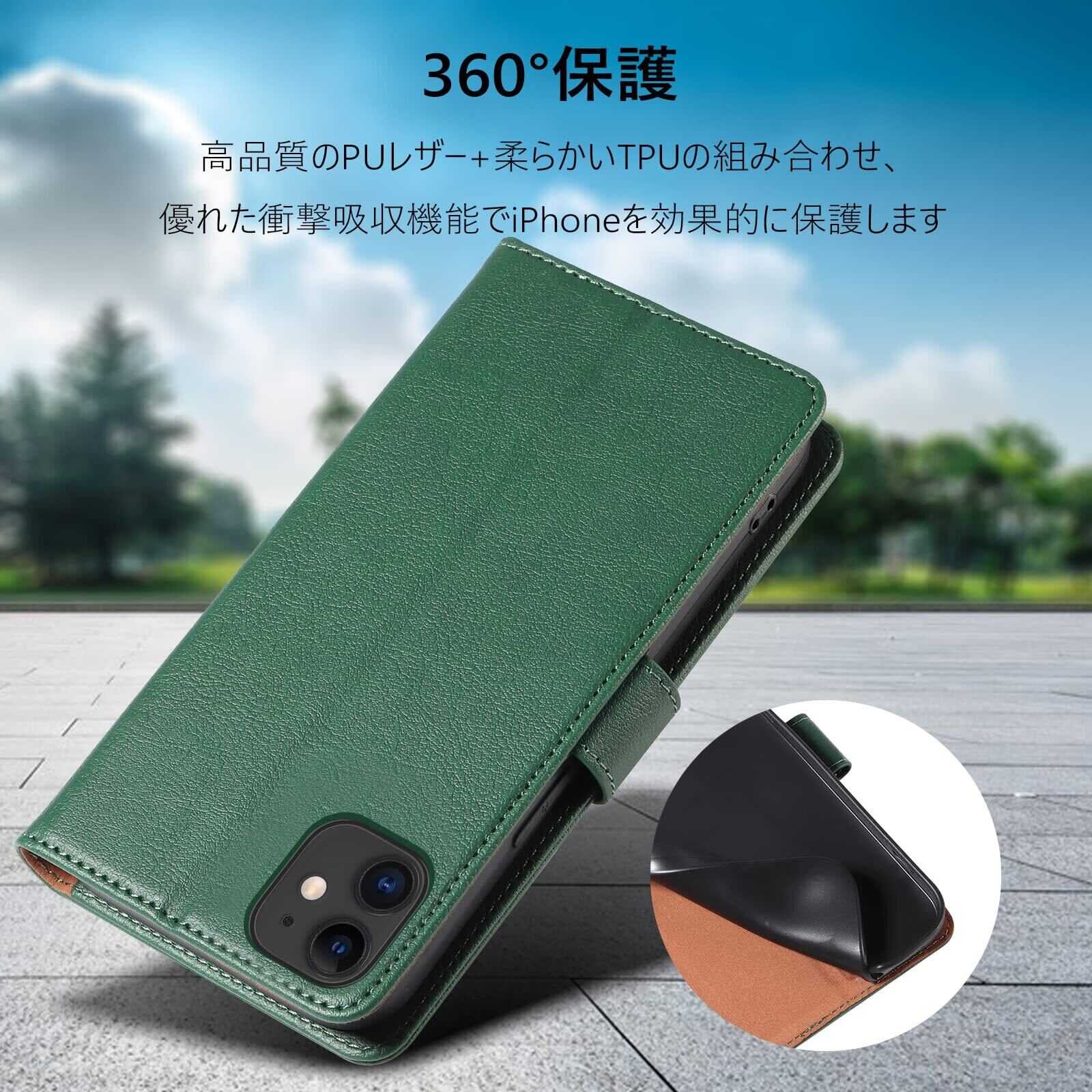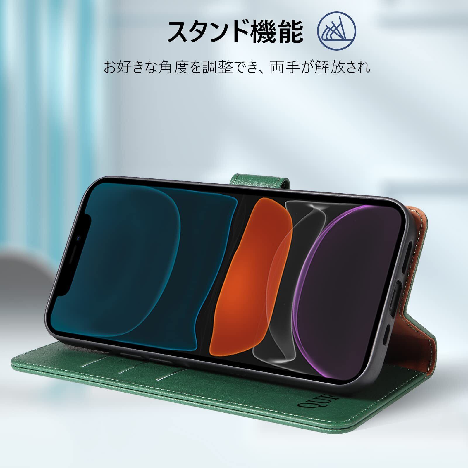 QUEASON 互換品 スマホケース「iphone 11 用 ケース 手帳型」マグネット式 PUレザー いphone11 用 ケース 手帳型 耐衝撃 アイフォン 11 用 ケース 手帳型 カード収納 スタンド機能 アイフォン11 用 ケース 手帳型 携帯カバー 落下防止 全面保護(グリーン) | hananoki