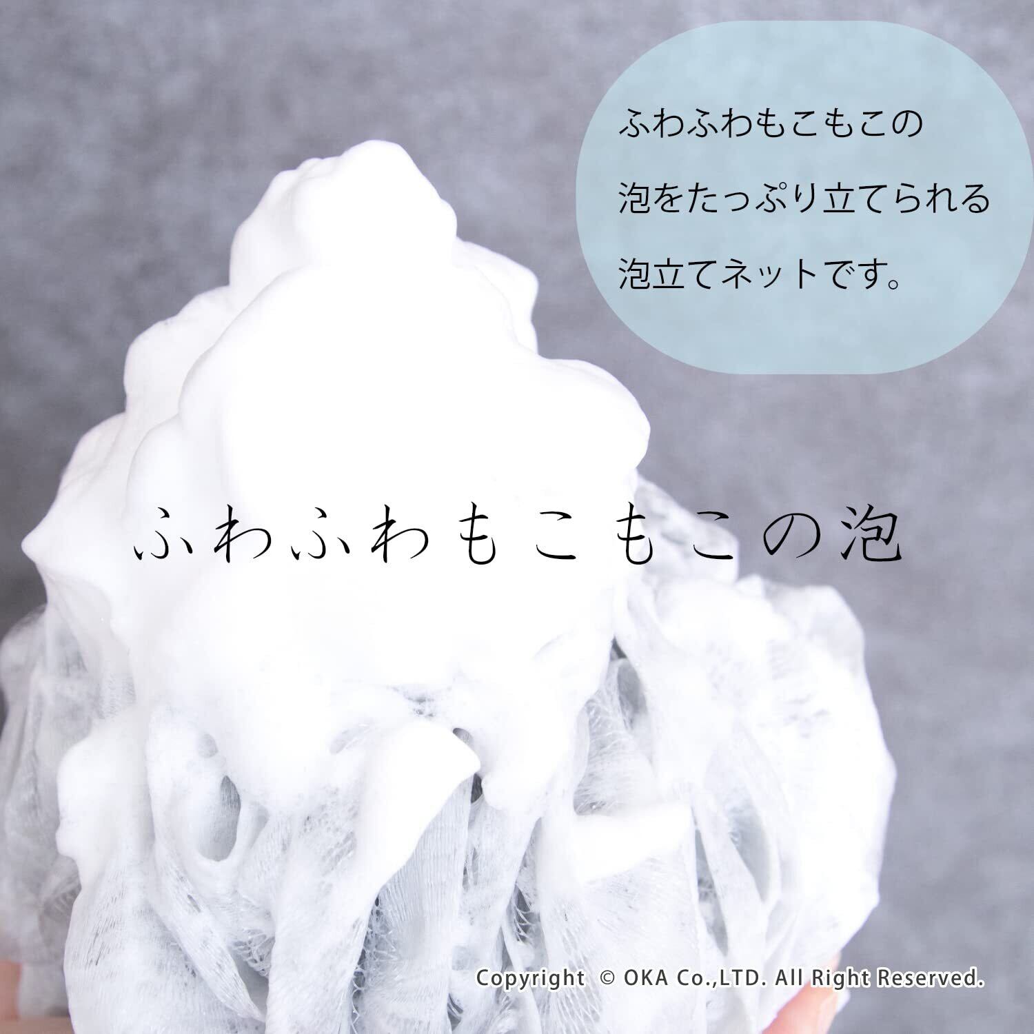 ふわふわもこもこ泡をたっぷり泡立てられる泡立てネットです。低密度ポリエチレンを使ってるので。とてもやわらかく優しい手触りになってます。