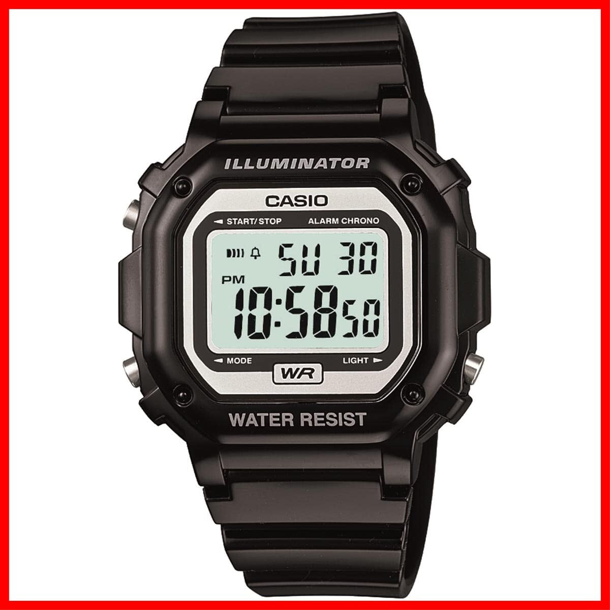 日常生活防水機能やLEDライト付きのスポーティーなデジタルウォッチ。