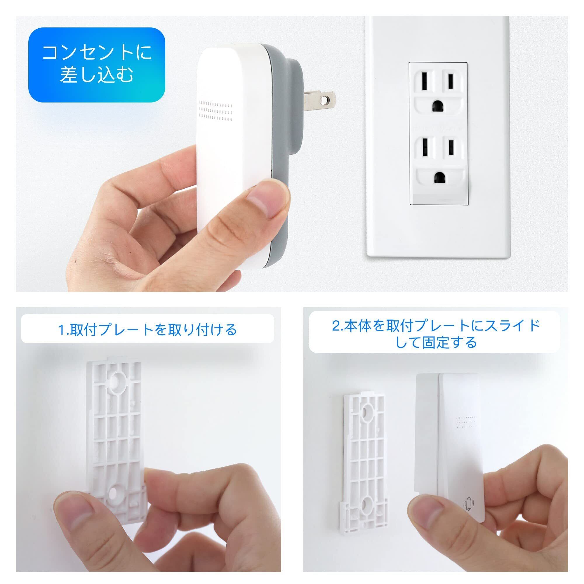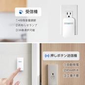 【電池不要&簡単取付】自動発電の送信機なので電池不要で、ボタンが押されたときのみ電力を生成します。このため、メンテナンスや交換の頻度が低く、長い寿命を持つことができます。 また両面テープとネジが付属しており、配線不要で簡単に取り付けることができます。 受信機はコンセントに差し込むだけ、お子供や年寄りの方がご利用できます。