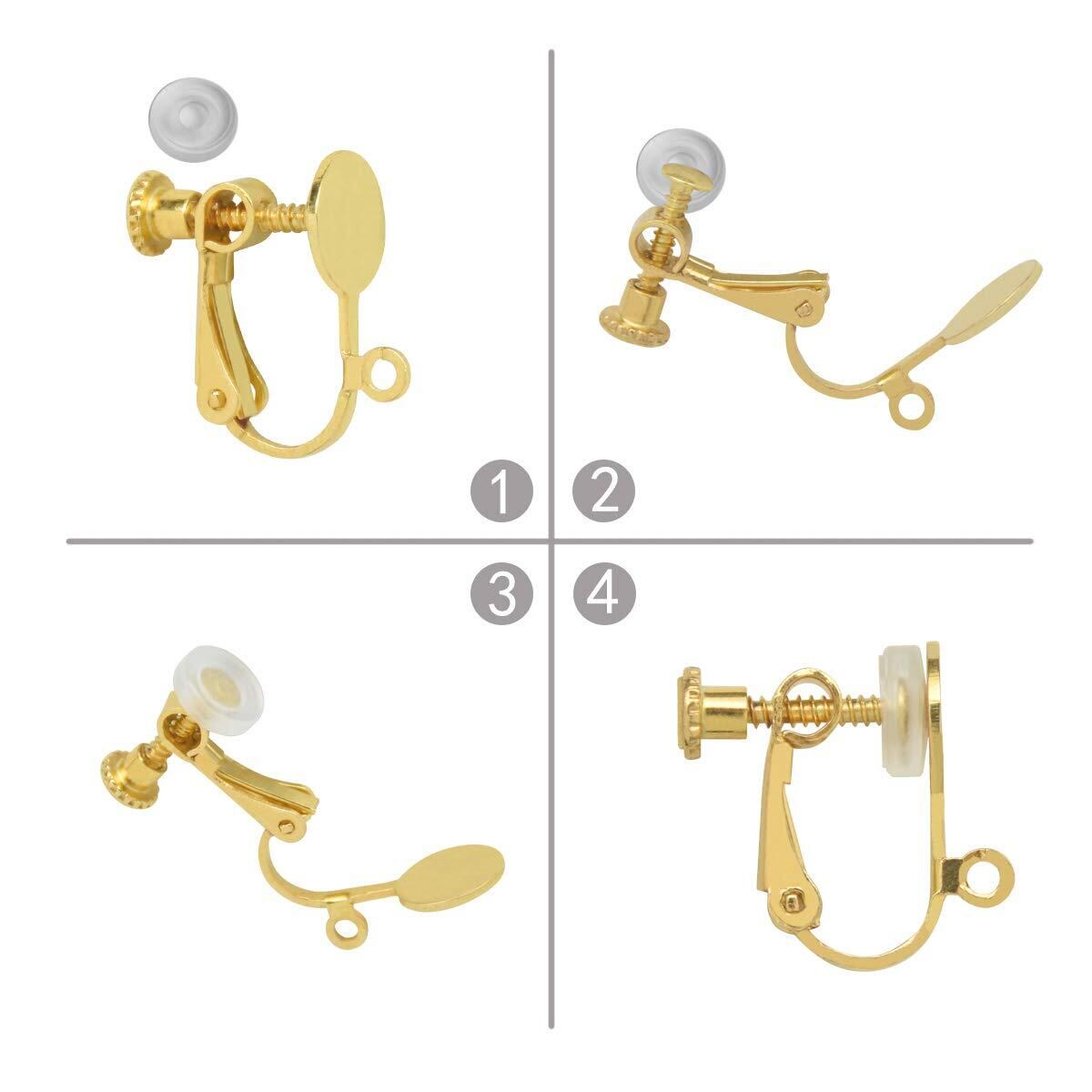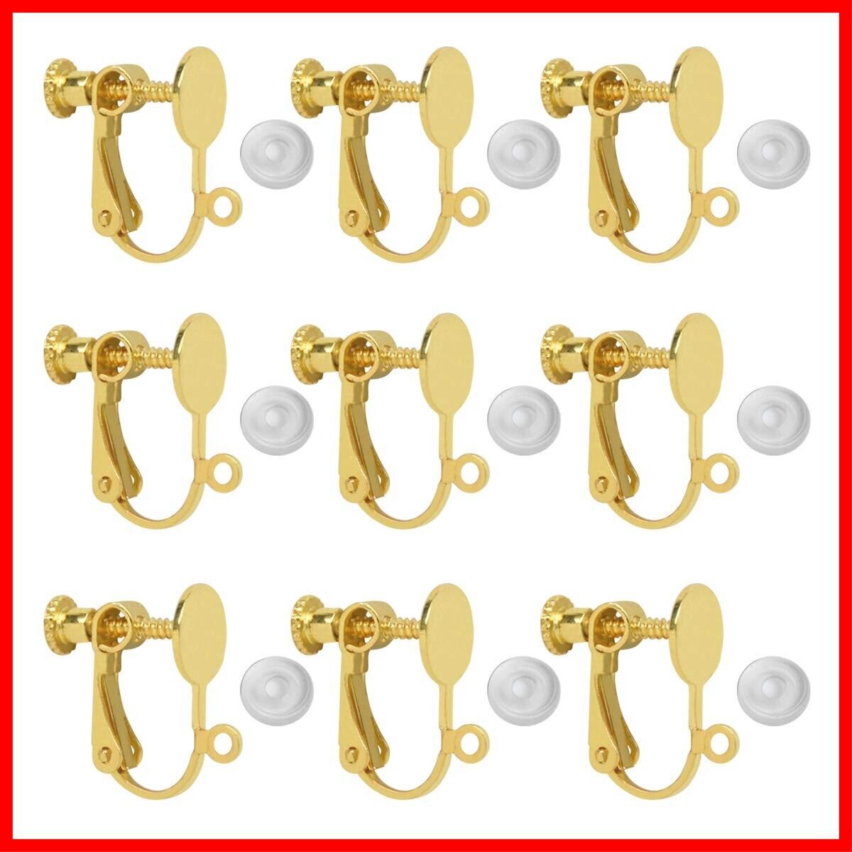 イヤリングパーツ MUNCVY DIY ネジバネ式 皿付き カン付き 8mm 5ペア10個 シリコンカバー付き ゴールド ネジ調整クリップ 貼り付けタイプノンホール ピアス ハンドメイド 基礎金具 材料 素材 | hananoki