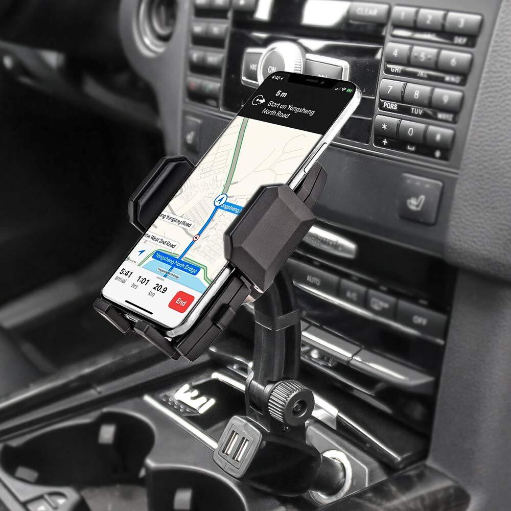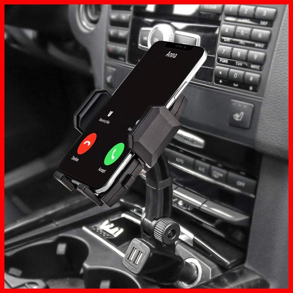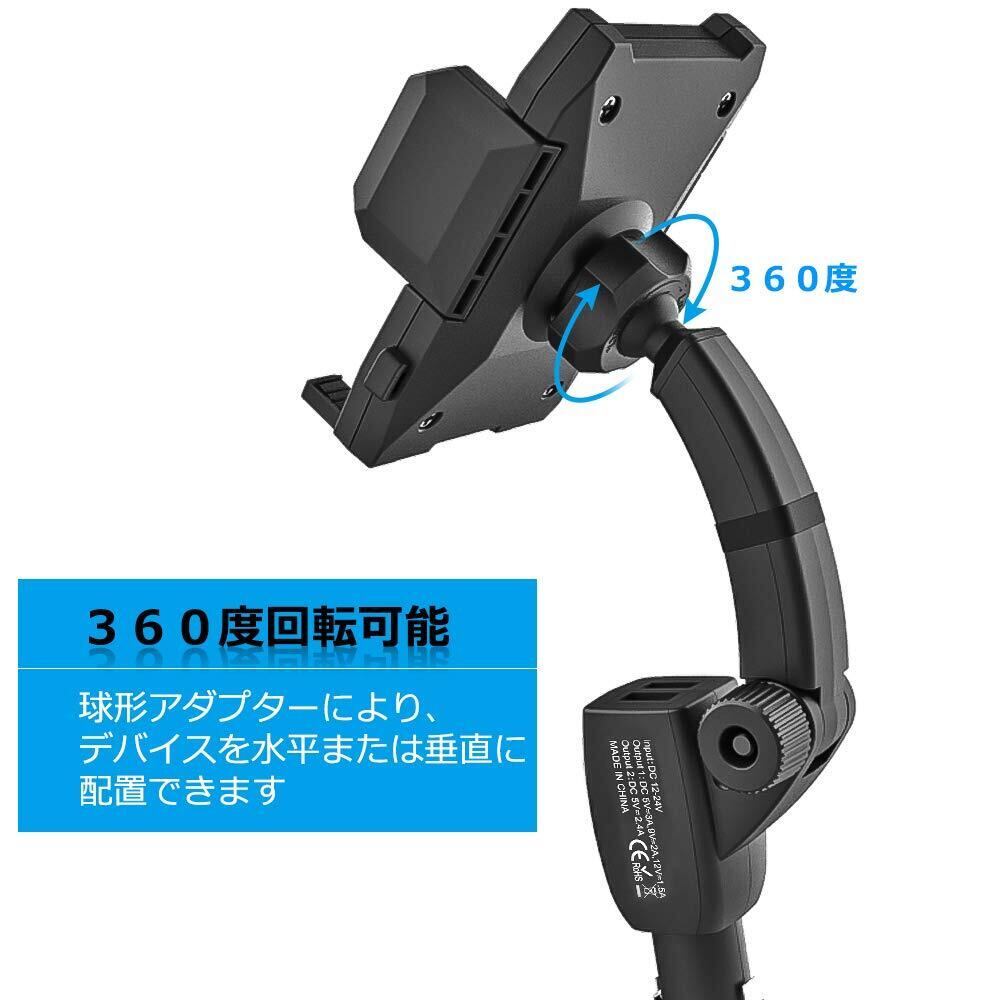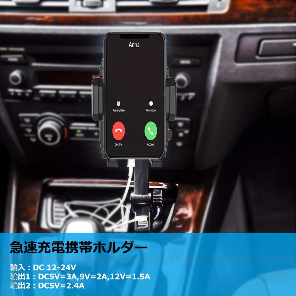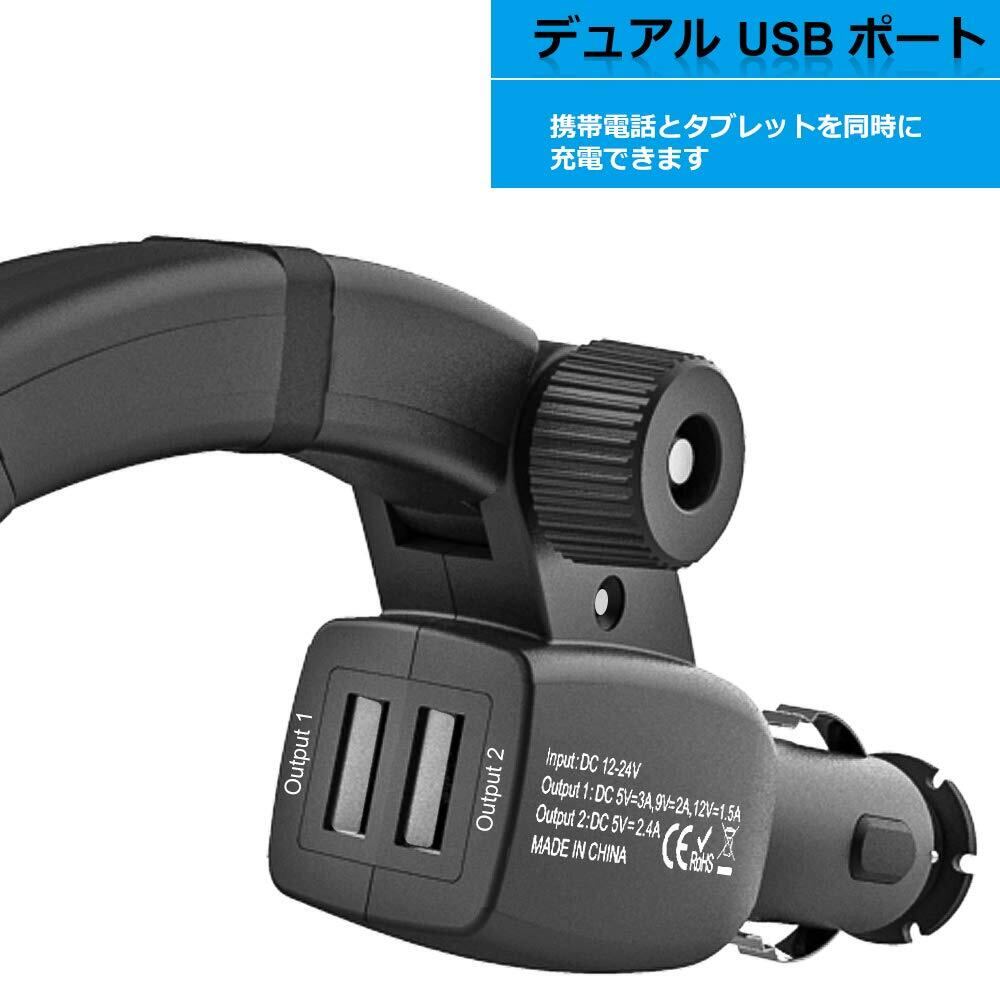 急速充電車載ホルダー デュアルUSBポー携帯カーマウント 360度回転スマートフォンホルダー 対応機種:3.5-6.8インチスマホ