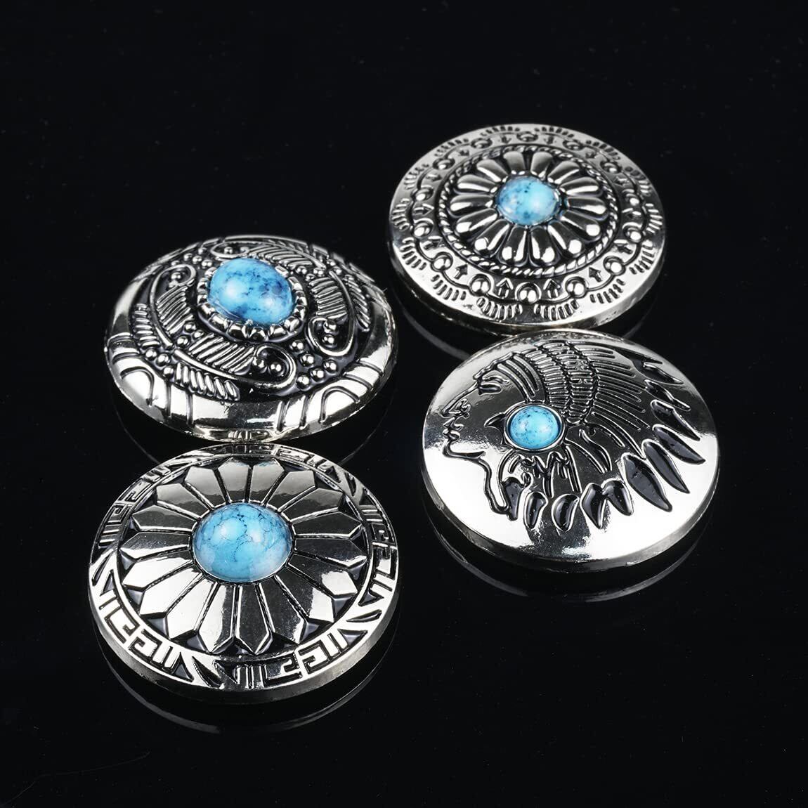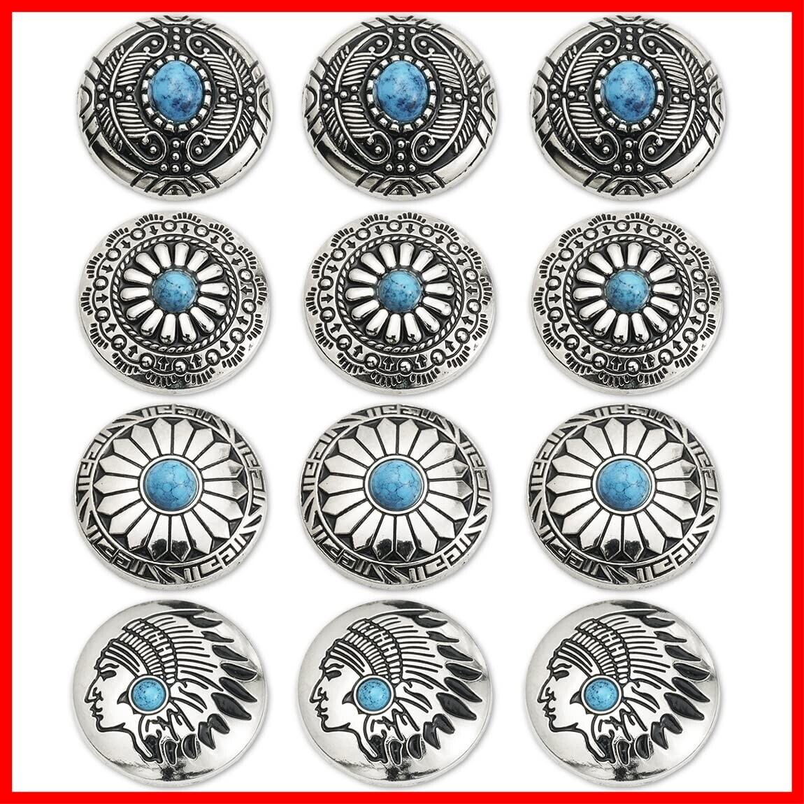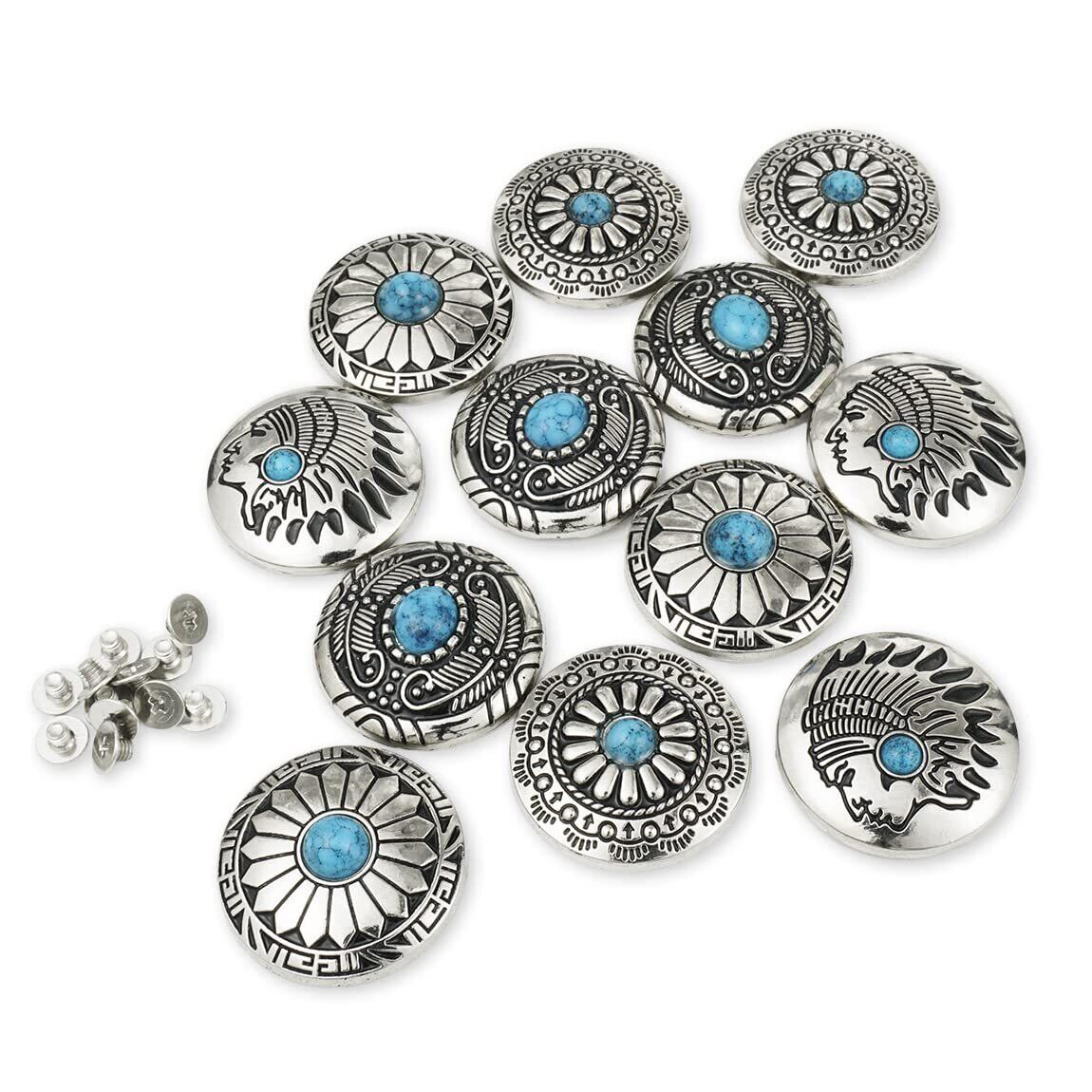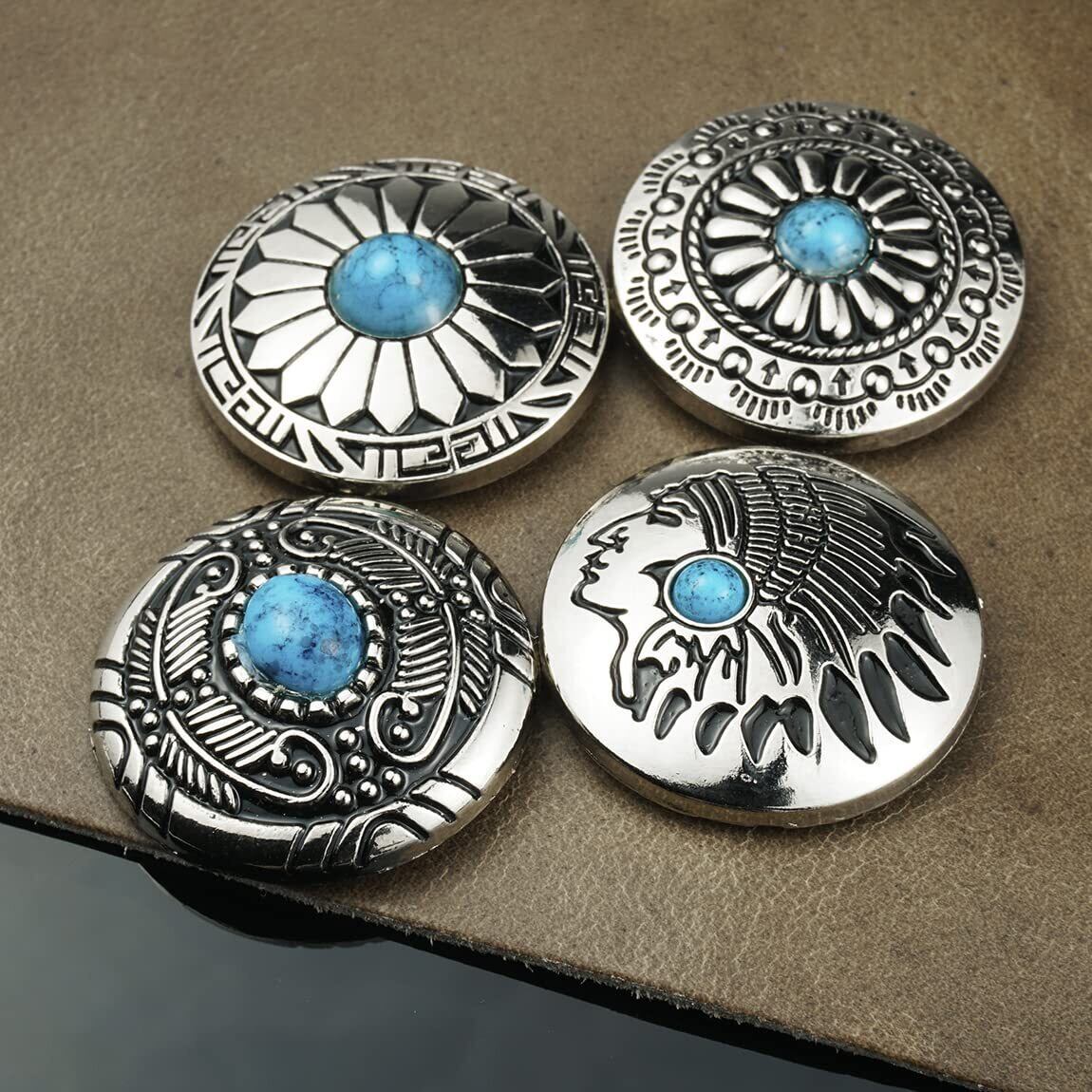 コンチョ ボタン ターコイズ 12個セット 30mm ネジ 付き シルバー レザー クラフト 財布 バッグ