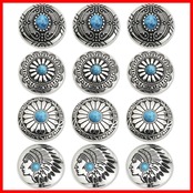 ターコイズコンチョボタン4種で12個セットです。留め具として、ネジを12個付属します。