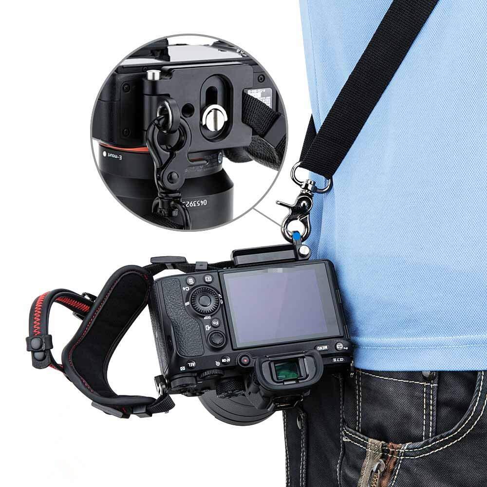 底は1/4"-20ネジ山が付き、ハンドストラップを取り外しなく、三脚に直接に装着できます