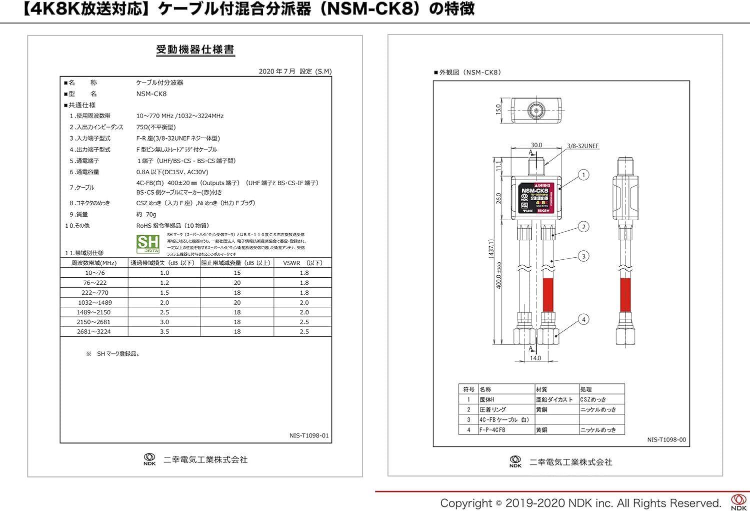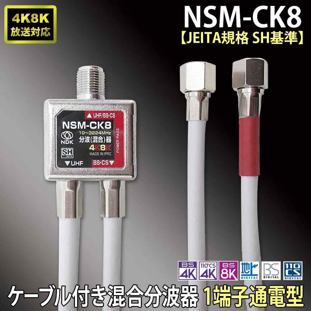 二幸電気工業 アンテナ混合分波器 ケーブル付き (4K 8K BS CS CATV 地デジ) 屋内用 アンテナケーブル SHマーク付 (NSM-CK8(SH))ケーブル長40cm