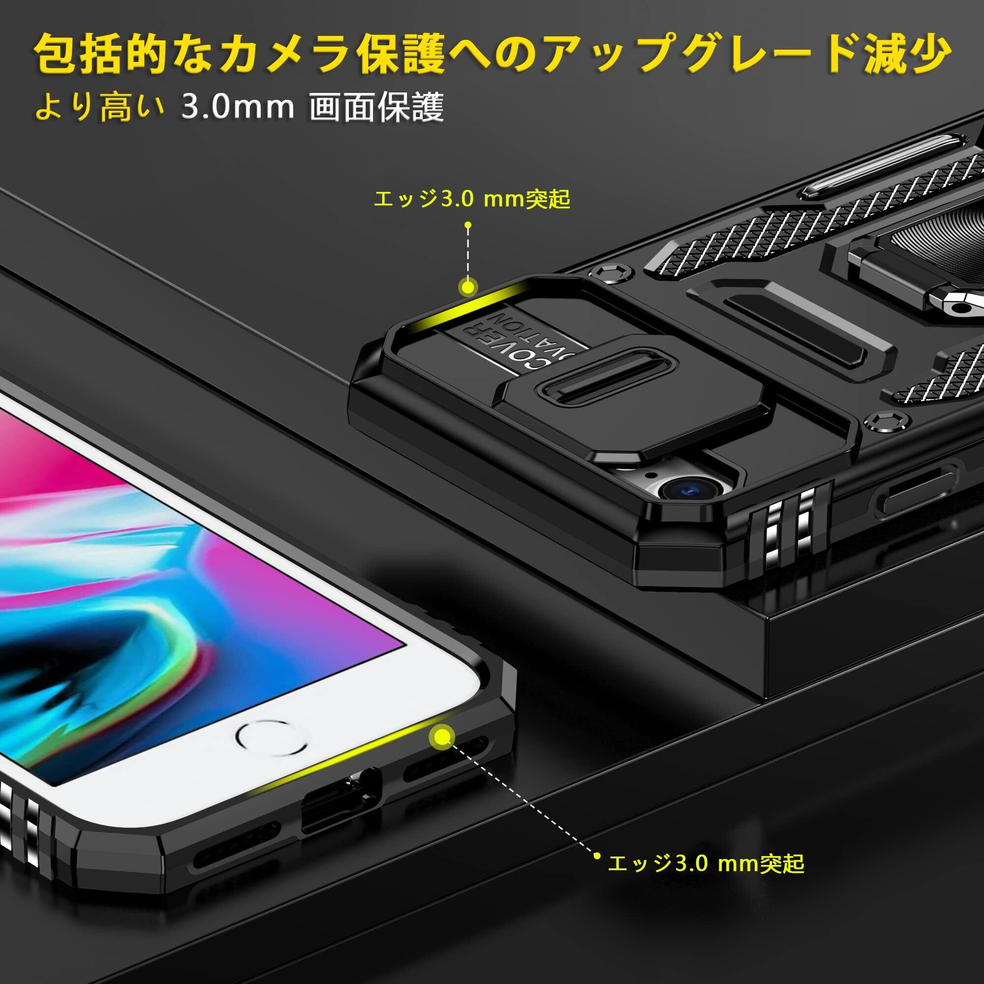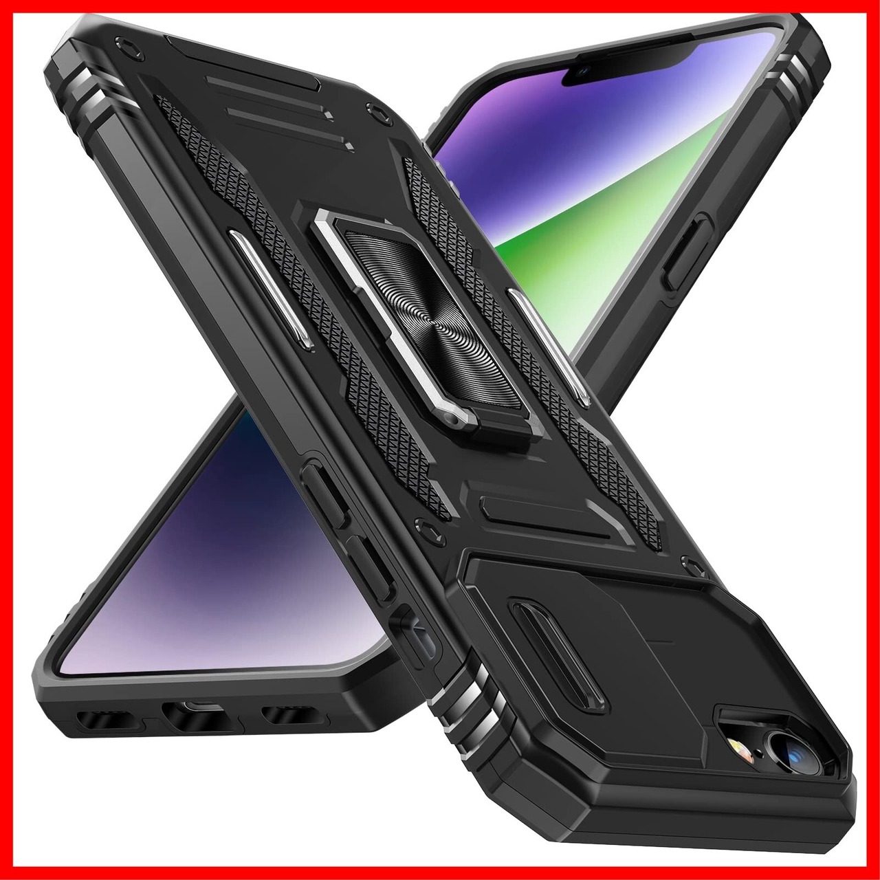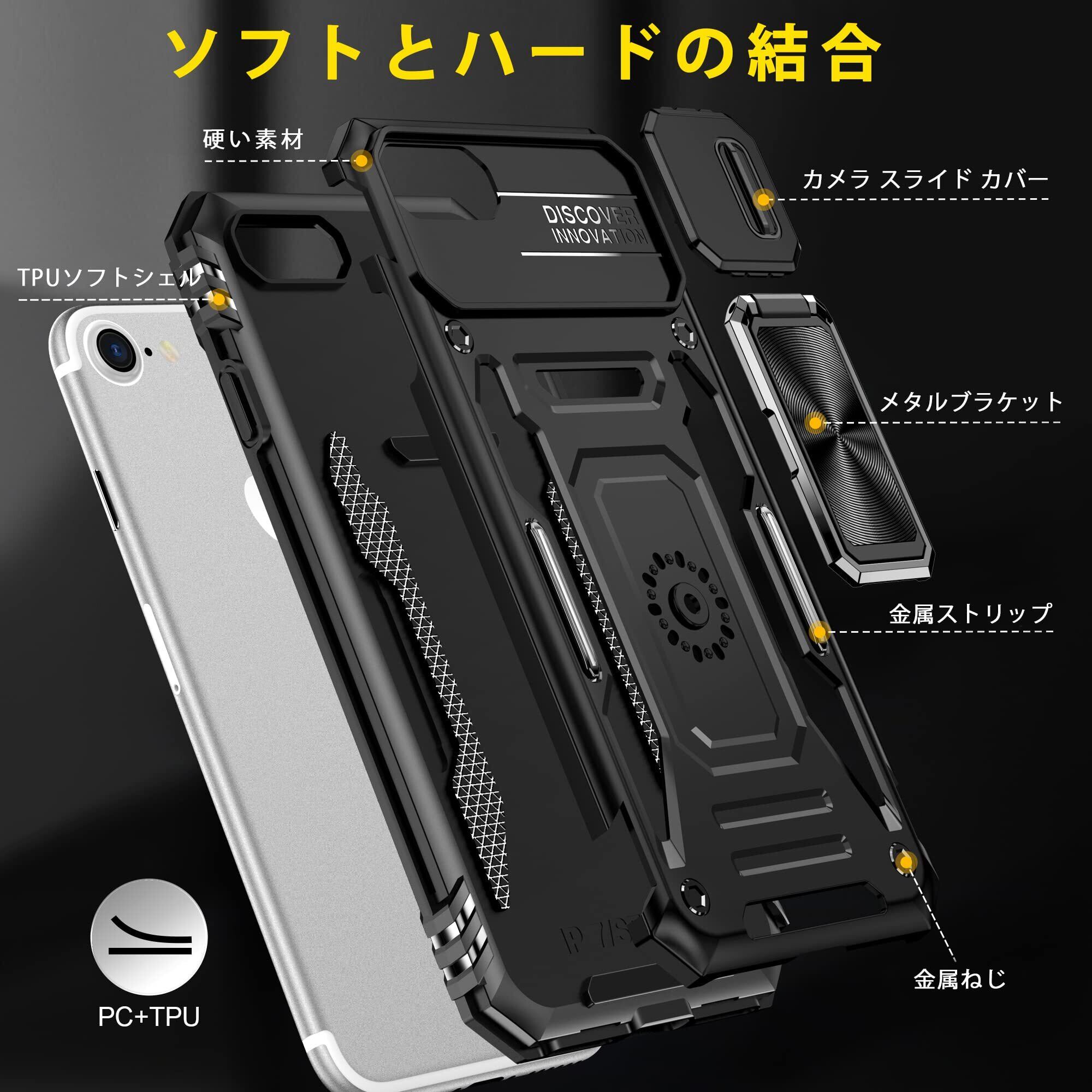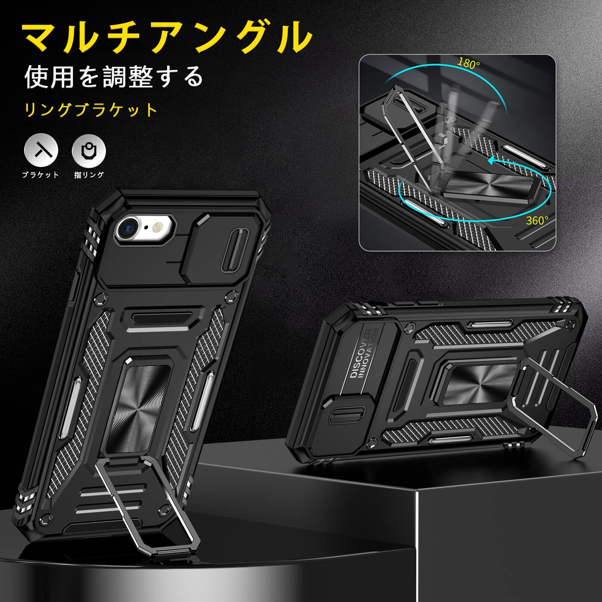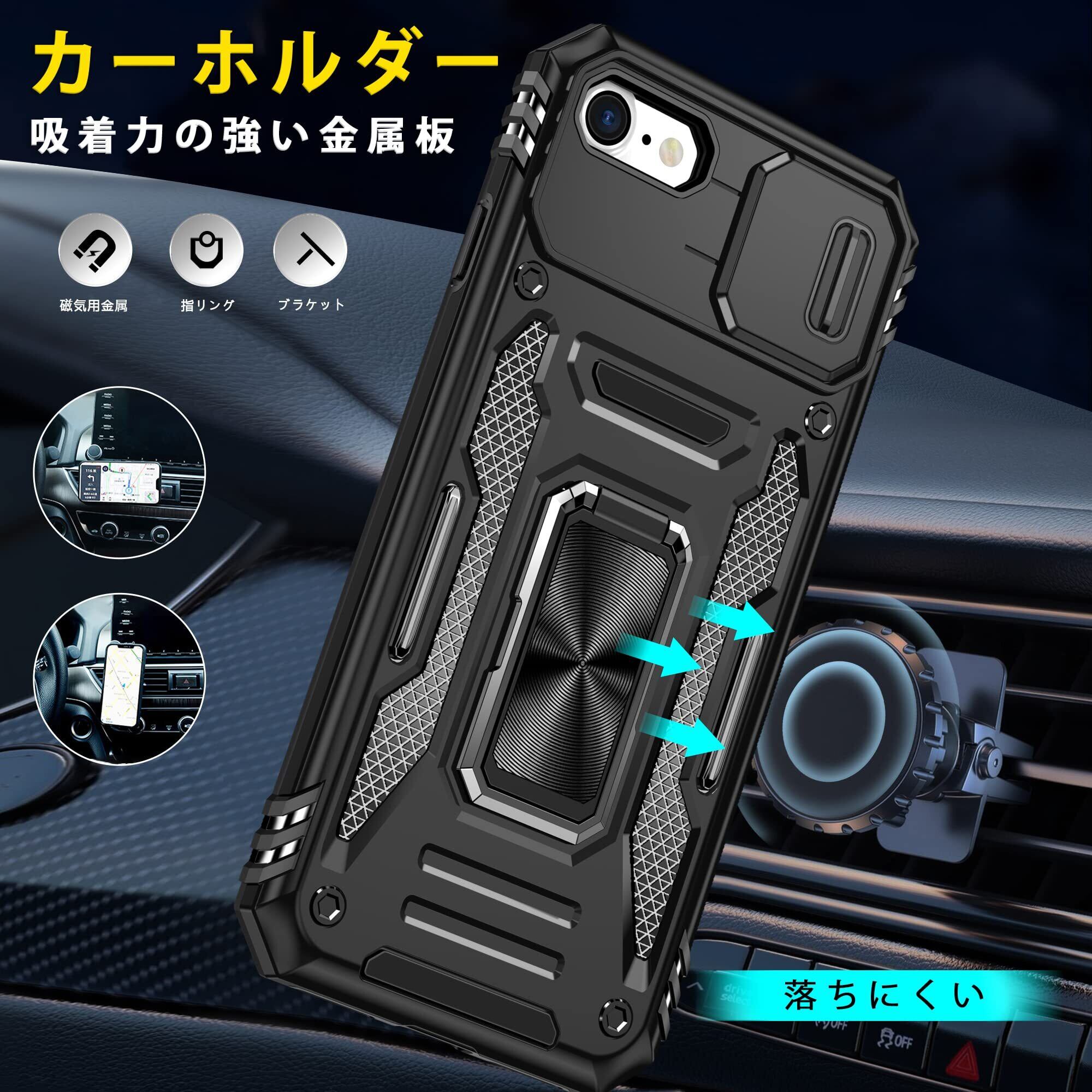iPhone SE3 SE2 SE 8 7 ケース リング付き 耐衝撃 pc+tpu 車載ホルダー対応 軽量 薄型 擦り傷防止 取り出し易い 360°回転 スタンド機能 リング 携帯カバー ブラックLR-10-SE3-01 | hananoki