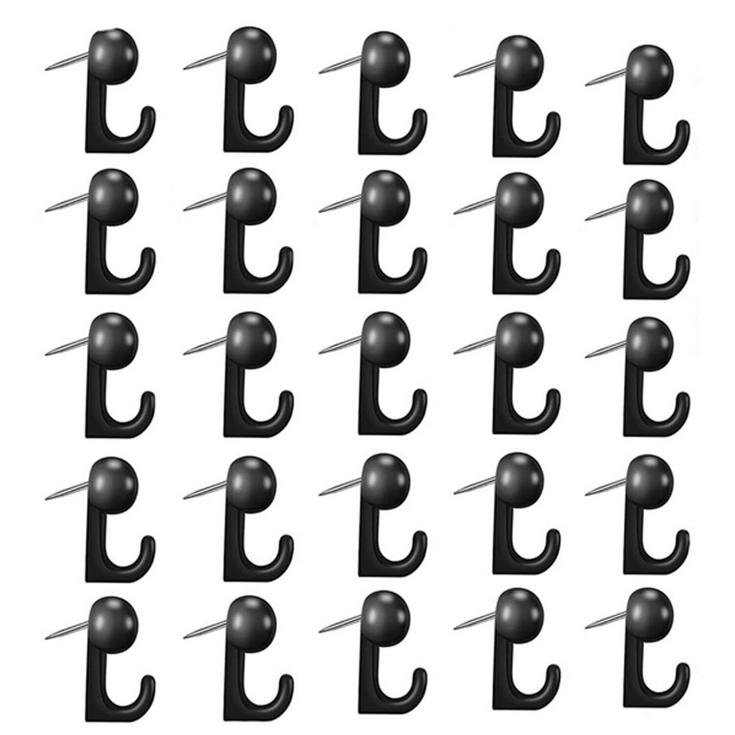 YOUOWO 画鋲 押しピン 画びょう 50個入り ブラック画びょう ピンフック 釘フック 太鼓鋲 留め具 壁掛 固定用 装飾品釘 透明収納ケース付き (黒)