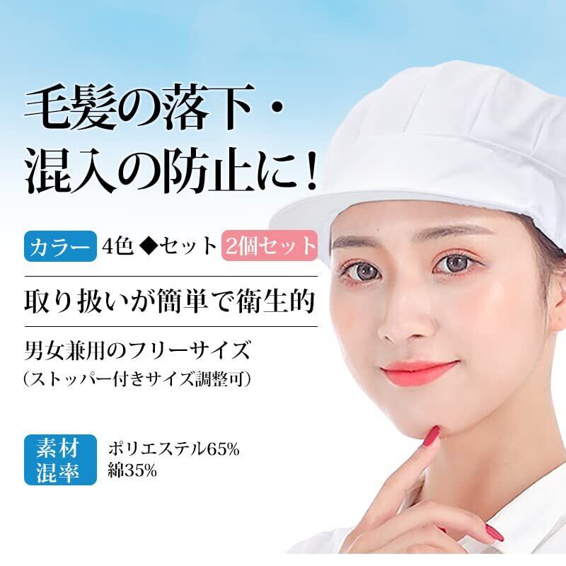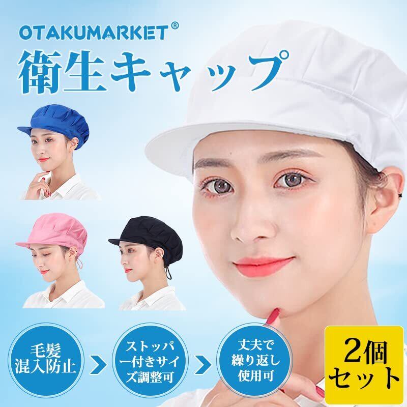 【衛生キャップ:サイズ調節可能】サイズ:フリーサイズ(男女兼用:頭囲62cm以内)ストッパー付きスピンドルをしぼって簡単にサイズ調節可能 商品素材:綿ポリエステル セット内容:2個セット