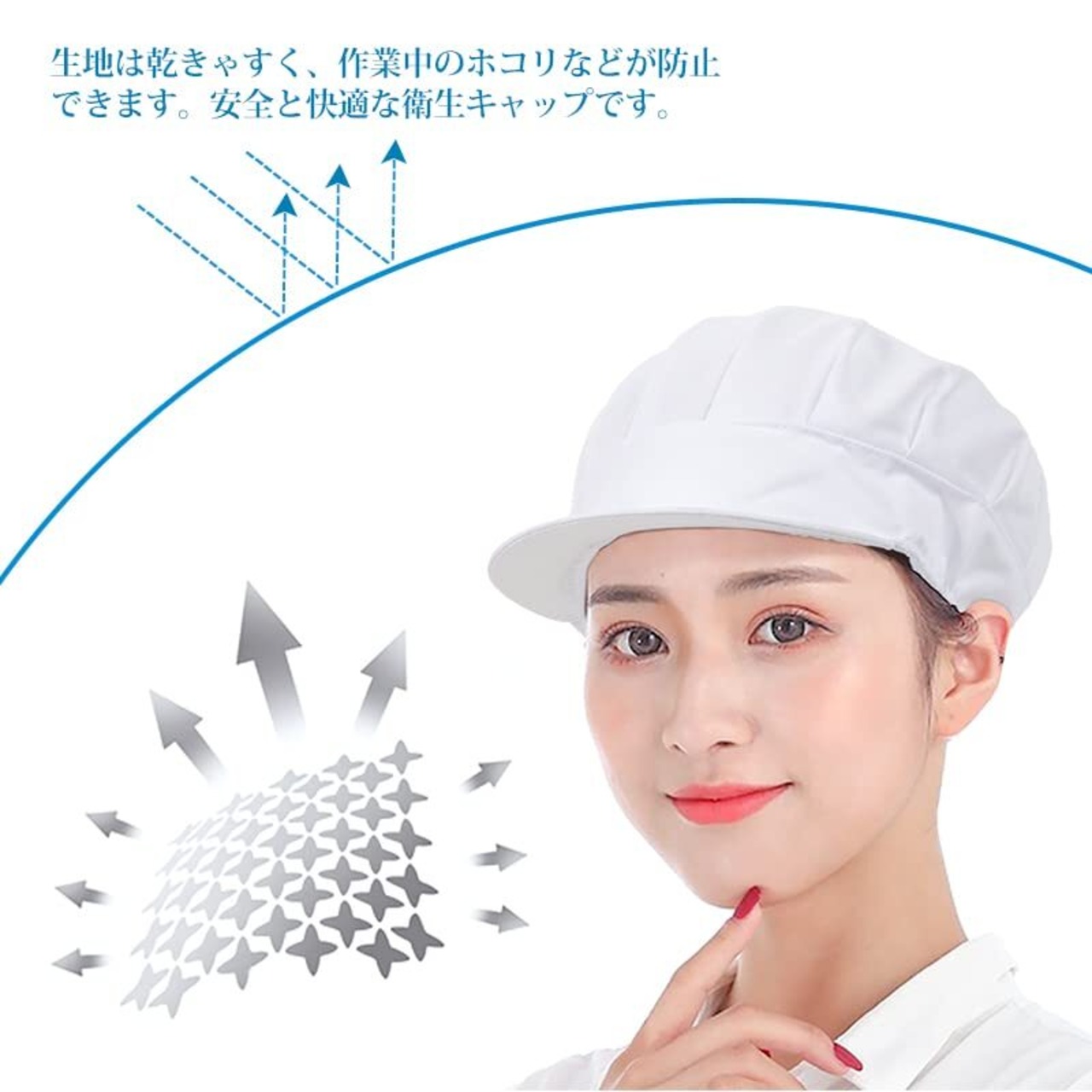 【衛生帽子/厨房帽子のうれしいポイント】後頭部にストッパー付きスピンドルをしぼって簡単にサイズ調節可能です。かわいいつば付き、清潔感のある業務用帽子です。洗濯してもすぐに乾きます。髪の毛を入れるゆとりのあるクリーンキャップですので、ロングヘアの方も安心です。