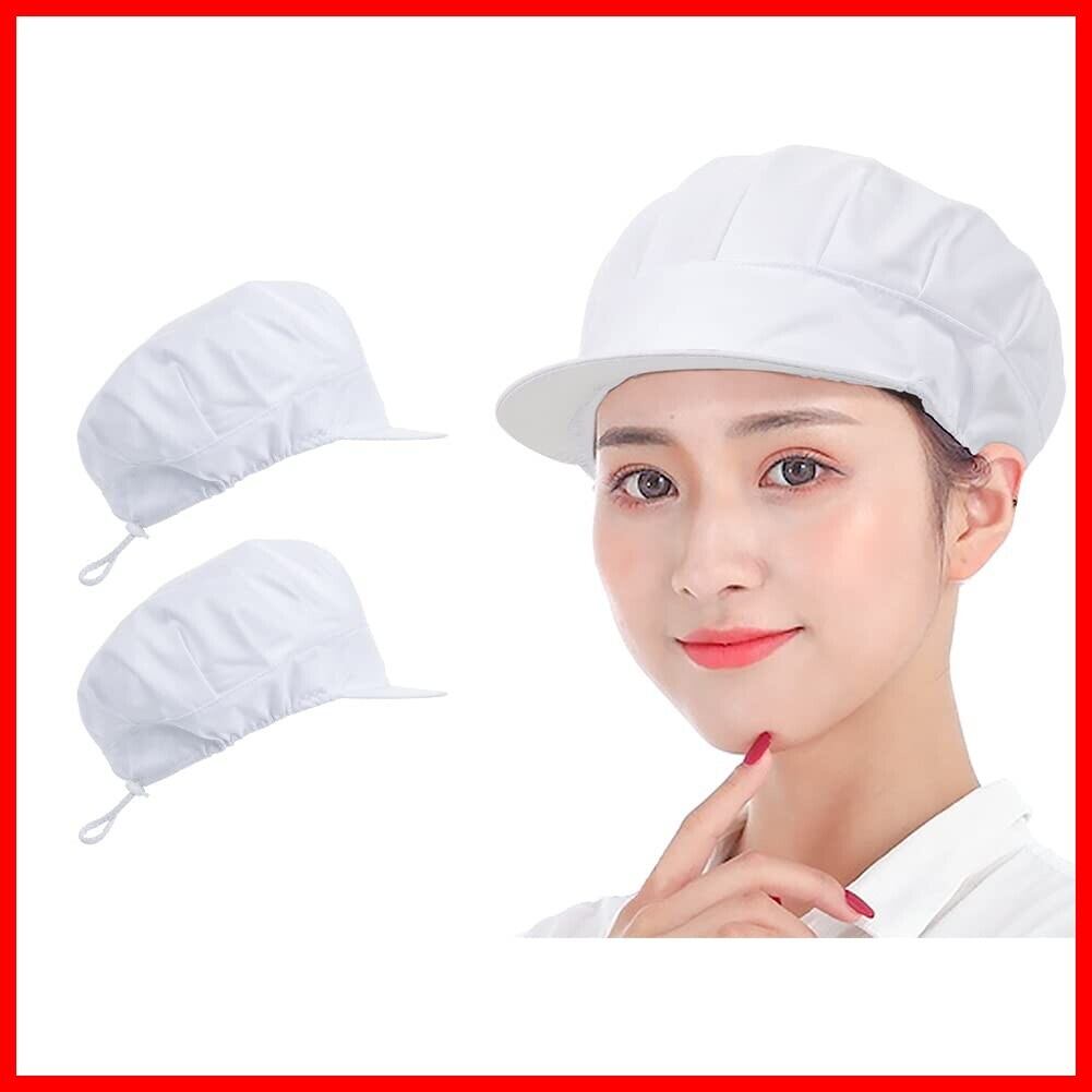 衛生キャップ 2枚セット サイズ調整可 つば付き 衛生帽子 給食 帽 衛生 厨房 帽子 調理キャップ 飲食店 調理帽子 給食用 女性 男性 用 メンズ キッチン 業務用 料理 作業 大人 男女兼用 4色 (白)