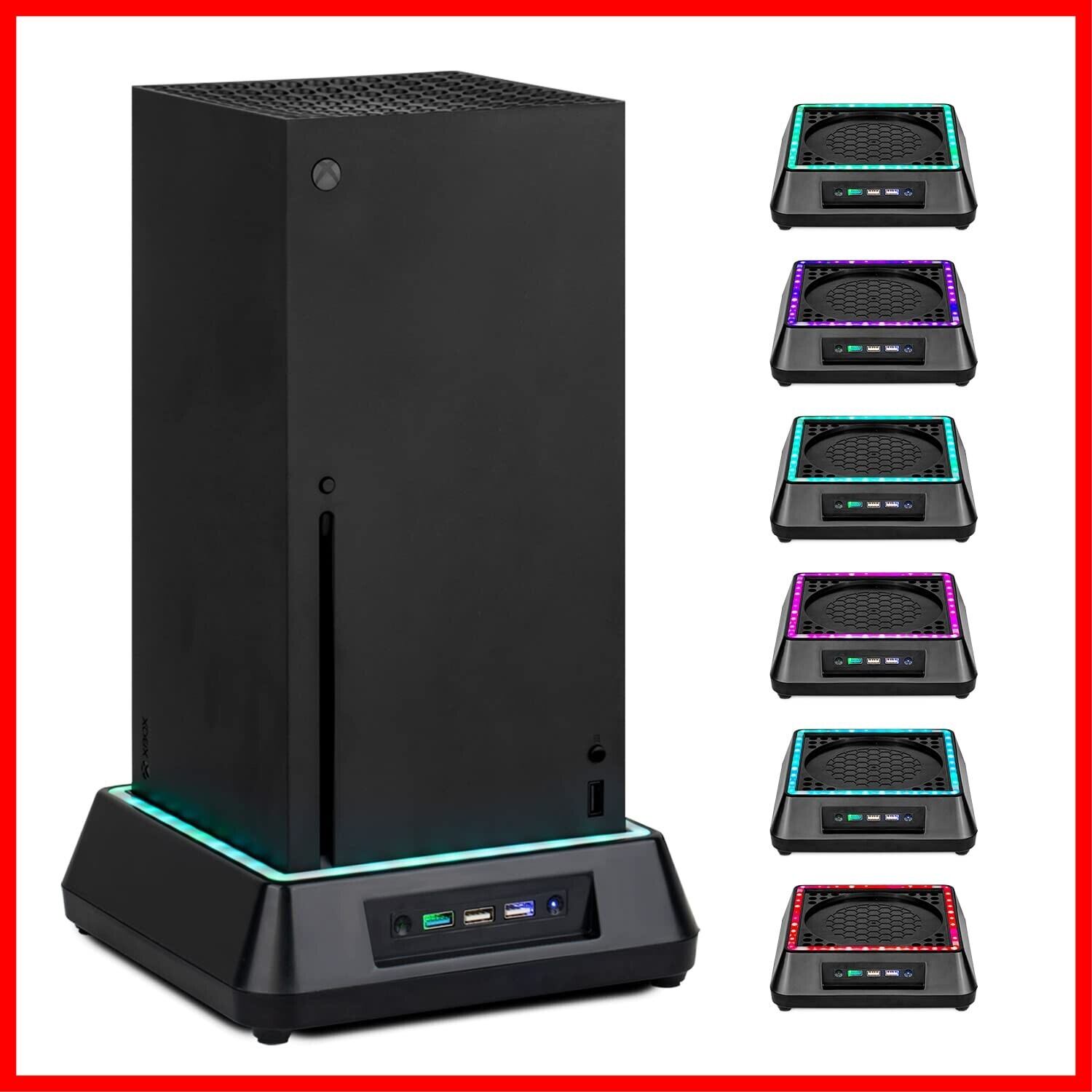 Xbox Series X 用冷却ファン スタンド XboxシリーズXのみ対応 超低ノイズ & 6色RGBライト付き & 3段階速度調整可能 & 3つの予備USBポート (データ送信の機能付き) Xbox Series Xファン アクセサリー ブラック(Black)