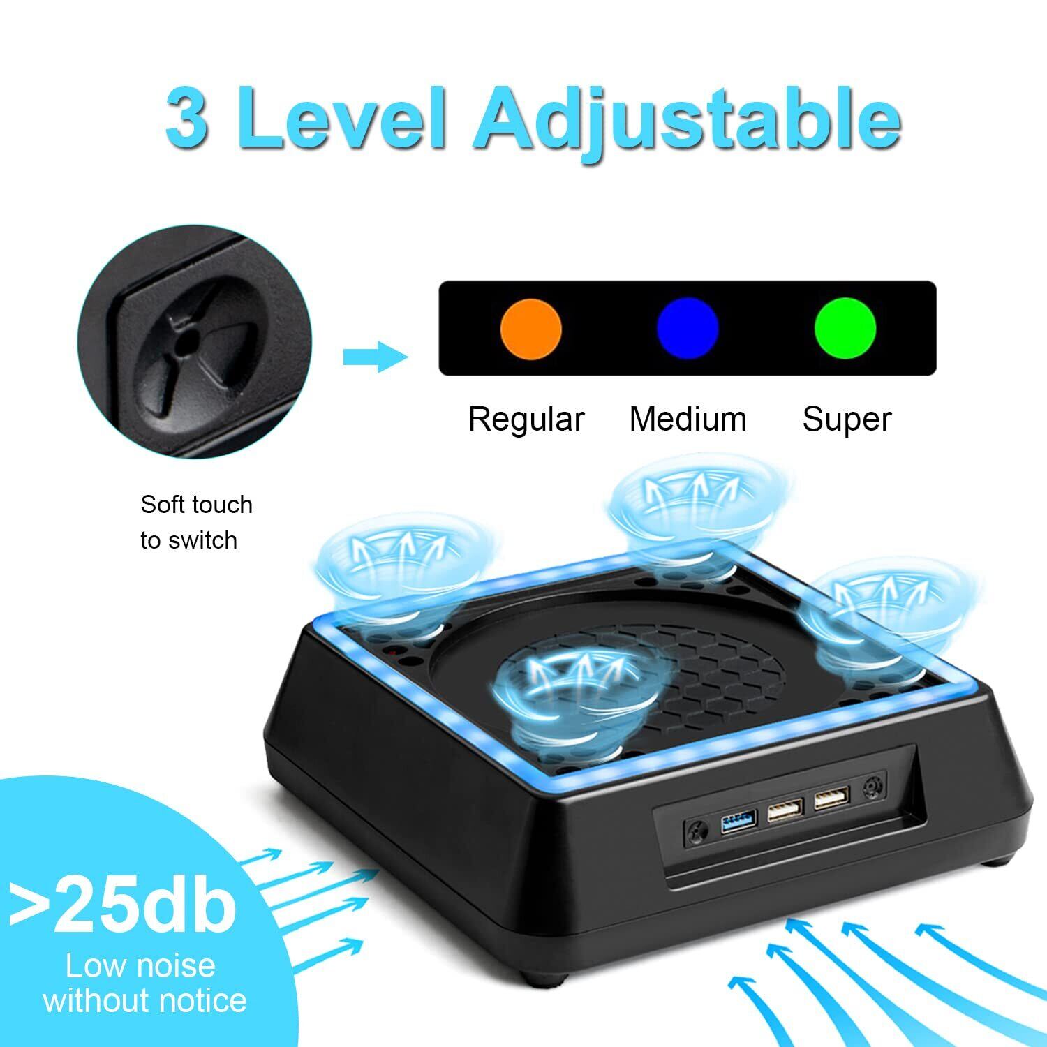 【追加の3つのUSBポートと使用簡単】:冷却ファンは3つののUSBポートを提供します。 青いポート((データ送信の機能付き))はデータ転送をサポートし、他の2つの白いポート(USB2.0)は充電のみをサポートします。 このファンは非常に使いやすく、コンソールの底に置いてXBOXコンソールの後部のUSBポートを通じて電力を供給するだけです。