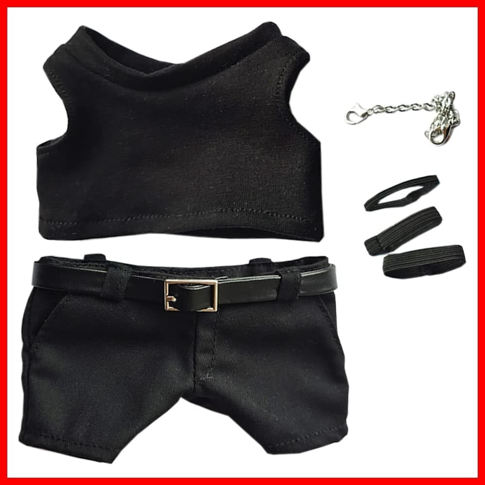 niannyyhouse 20cm綿人形の服 黒 ベスト ズボン ベルト 付属品 ぬいぐるみ 服 着せ替え