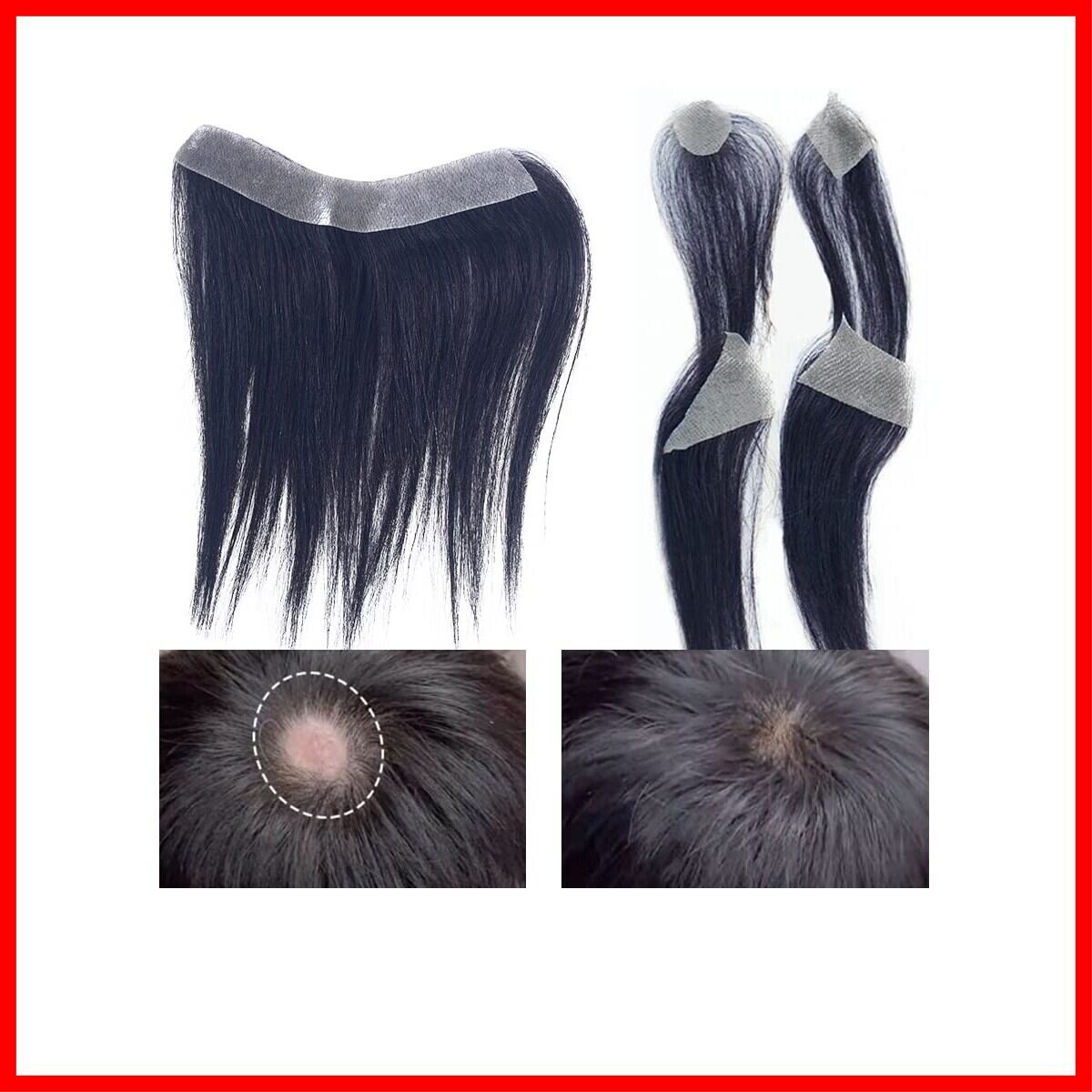 HIYE 部分ウィッグ 増毛シート 人毛100% 円形脱毛 m字 ハゲ隠し 自然 増毛 シール式 円形脱毛症隠し ウィッグ 生え際 軽い メンズ 男性用 脱毛 薄毛 ヘアピース びまん性脱毛症 人毛 貼る 付け毛 部分かつら 自然黒 ヘア 貼る増毛 髪 薄い (横15.5CMx縦2.2CM-25cm, 自然黒)