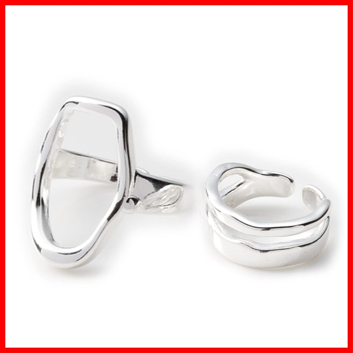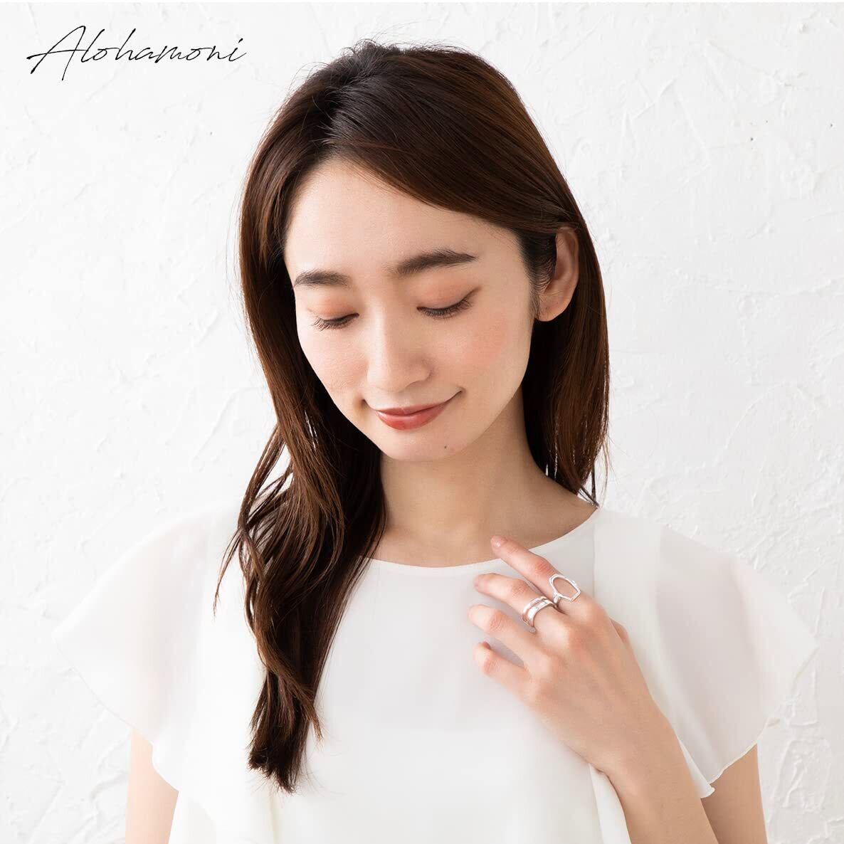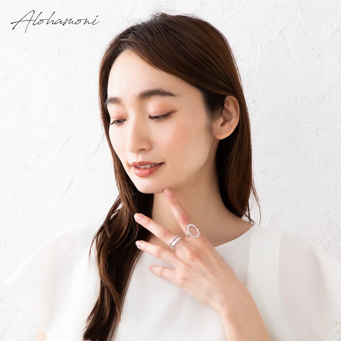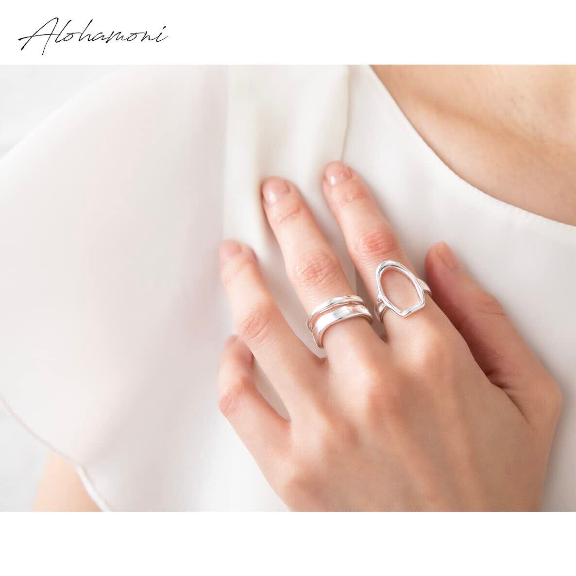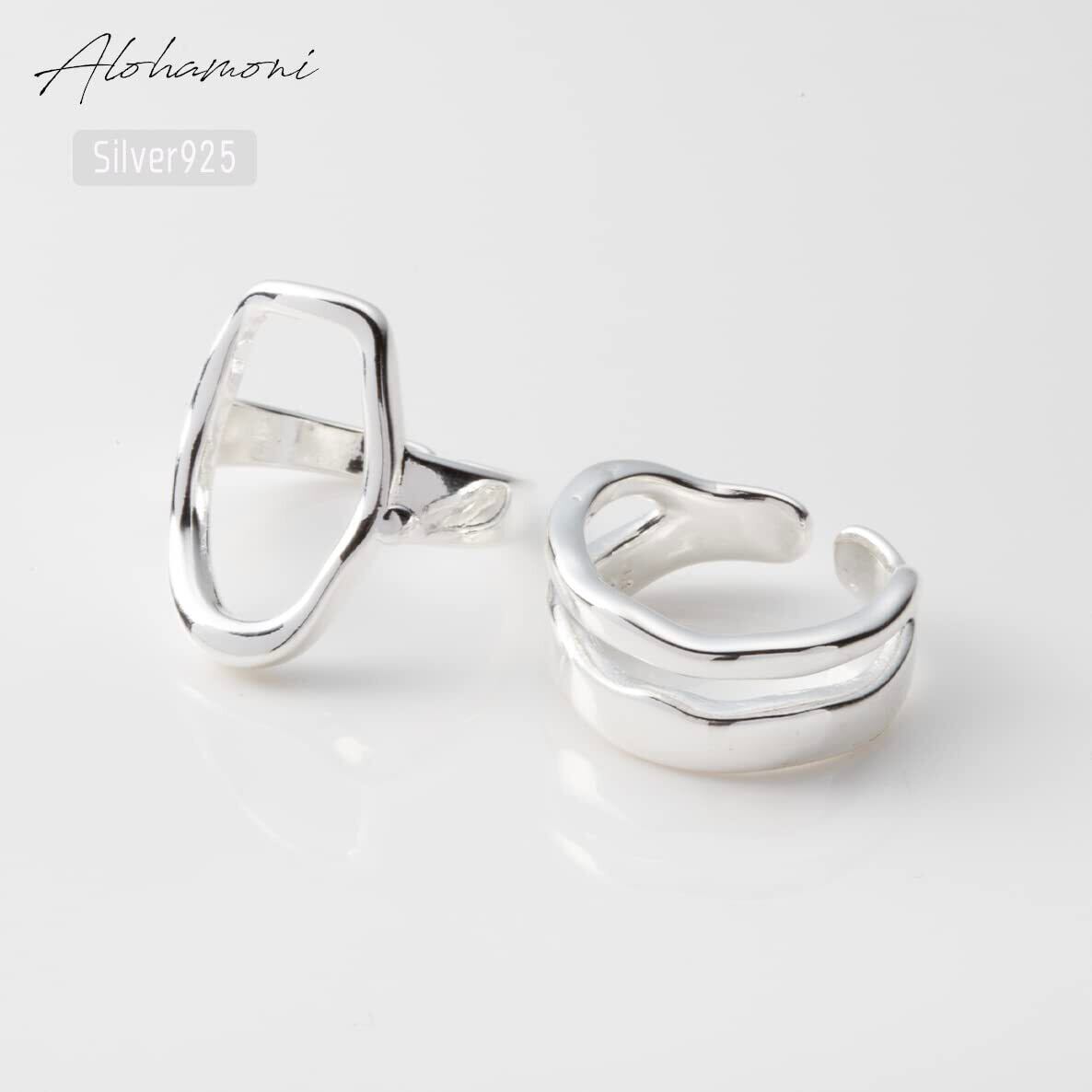 アロハモニ ヴィンテージ リング 2点セット おおぶり オーバルリング & ダブルラインリング シルバー925 指輪 喜平 チェーン フリーサイズ 韓国 オルチャン