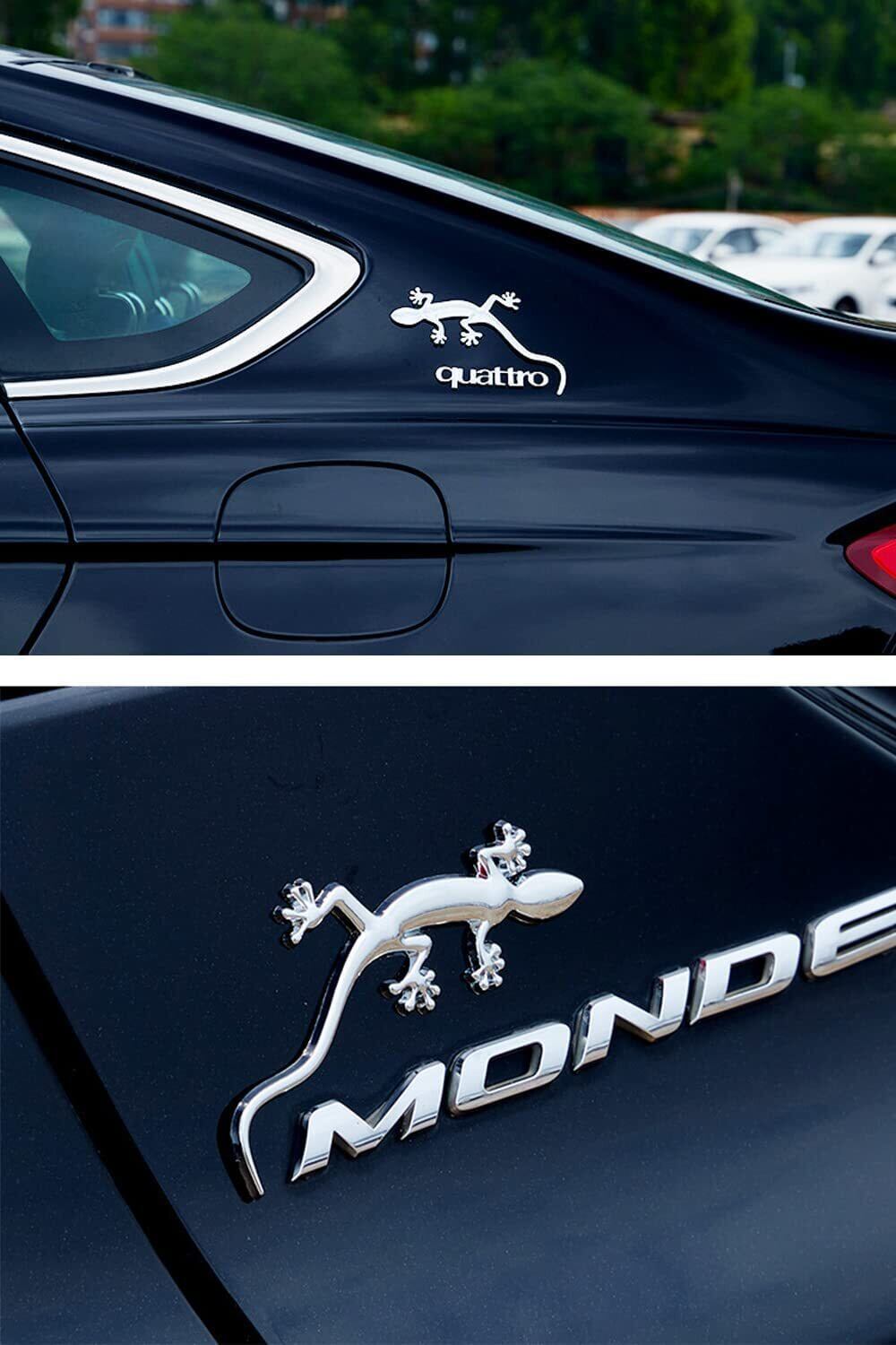 サムコス 車ステッカー ヤモリ ゲッコー 車 トカゲ カー用品 エンブレム カスタマイズ カスタム 爬虫類 動物 外装 3D 立体 おもしろ ドレスアップ 曲面もOK 簡単 貼るだけ シルバー 3個セット