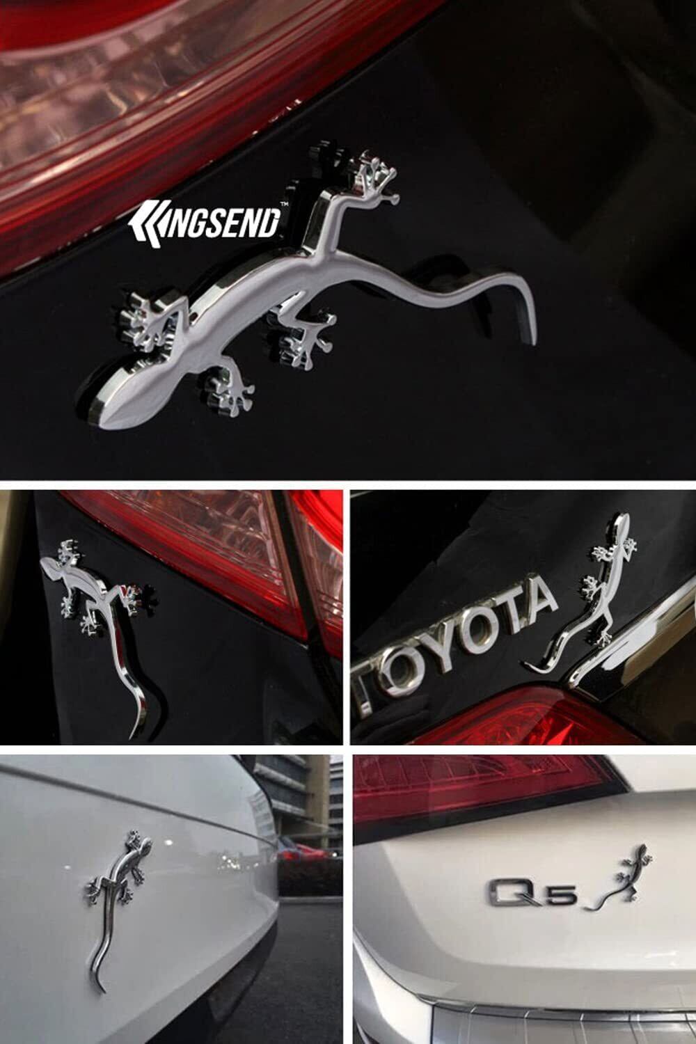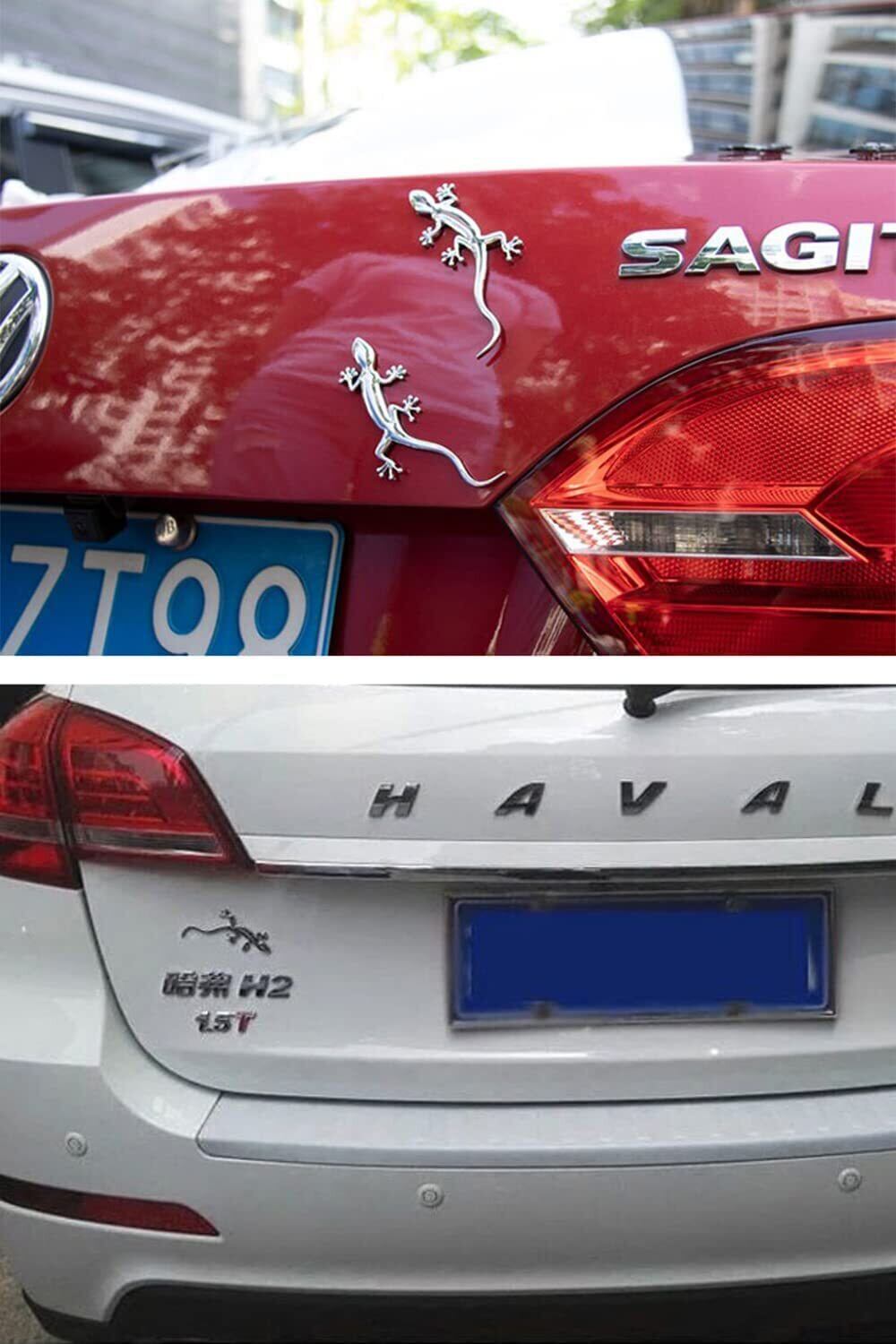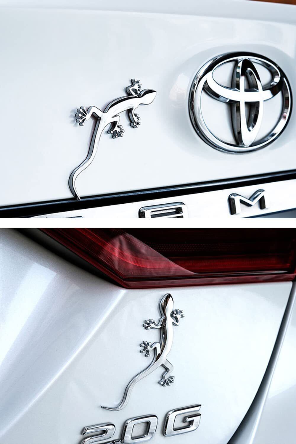 サムコス 車ステッカー ヤモリ ゲッコー 車 トカゲ カー用品 エンブレム カスタマイズ カスタム 爬虫類 動物 外装 3D 立体 おもしろ ドレスアップ 曲面もOK 簡単 貼るだけ シルバー 3個セット | hananoki