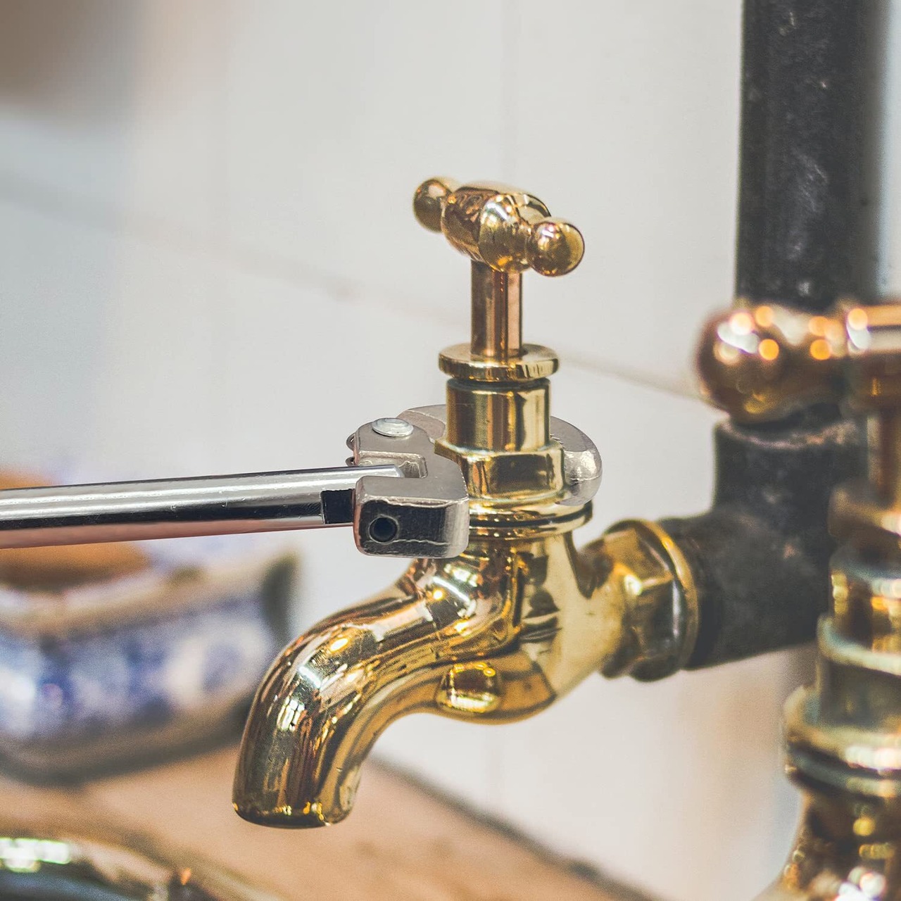 【高硬度・耐久性】シンクレンチ全体は高炭素鋼を採用、表面にメッキ加工を施されておりますので、防錆性・耐腐食があります。高硬度の炭素鋼で長時間に使用しても劣化しません。流し台、洗面台裏のナット回しなど様々な作業に活躍。