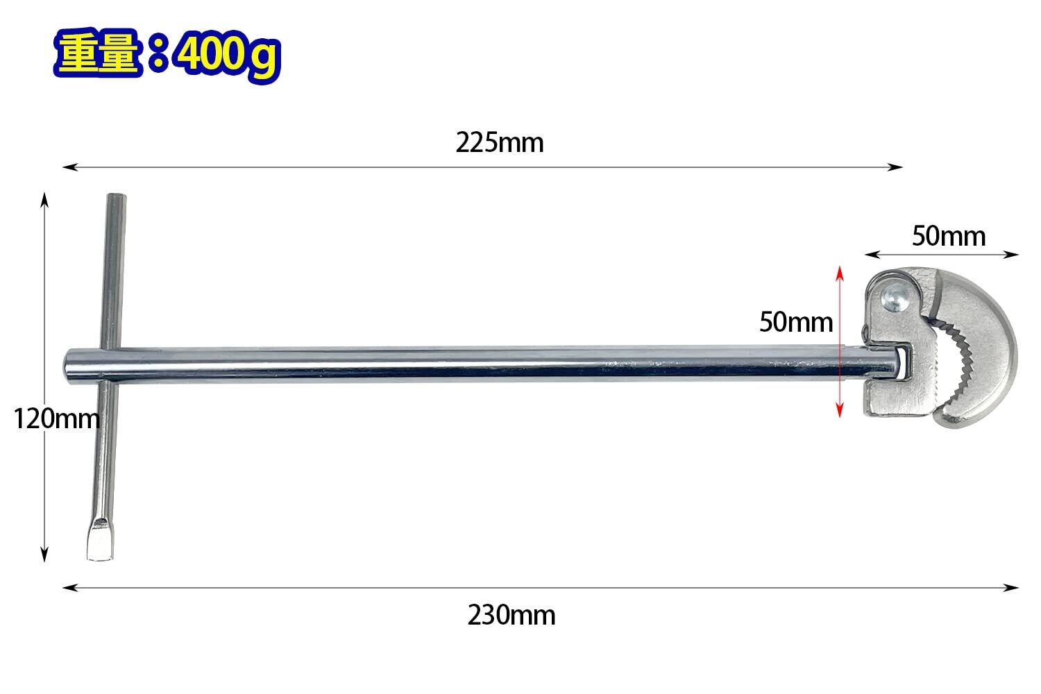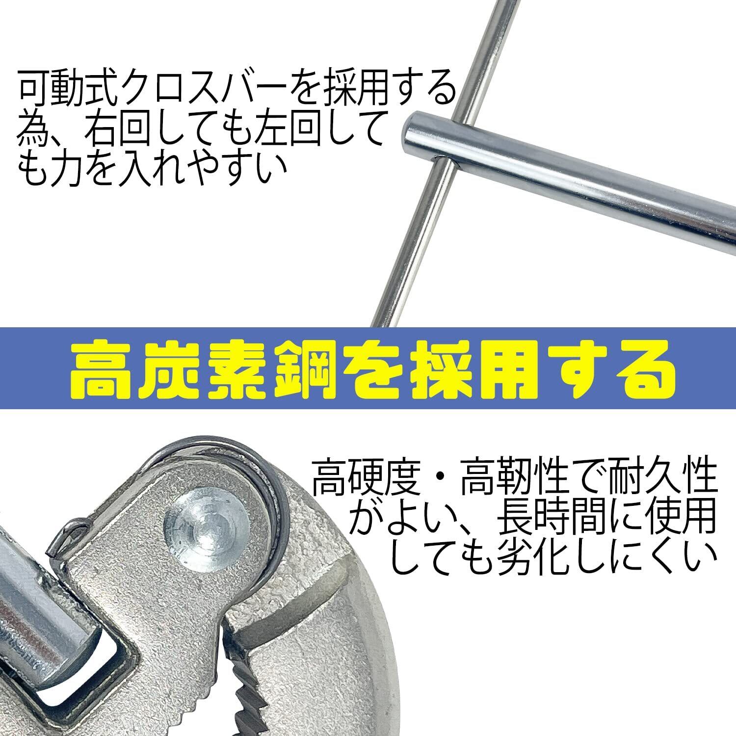 【力入れやすい】約30cmとちょっといい長さで握りやすい。本体はT字型に設計され、可動式のクロスバーを採用しておりますので、右回しても左回しても力を入れやすく、滑り止めグリップでナットをしっかりと掴めます。水栓取替作業はより簡単に!