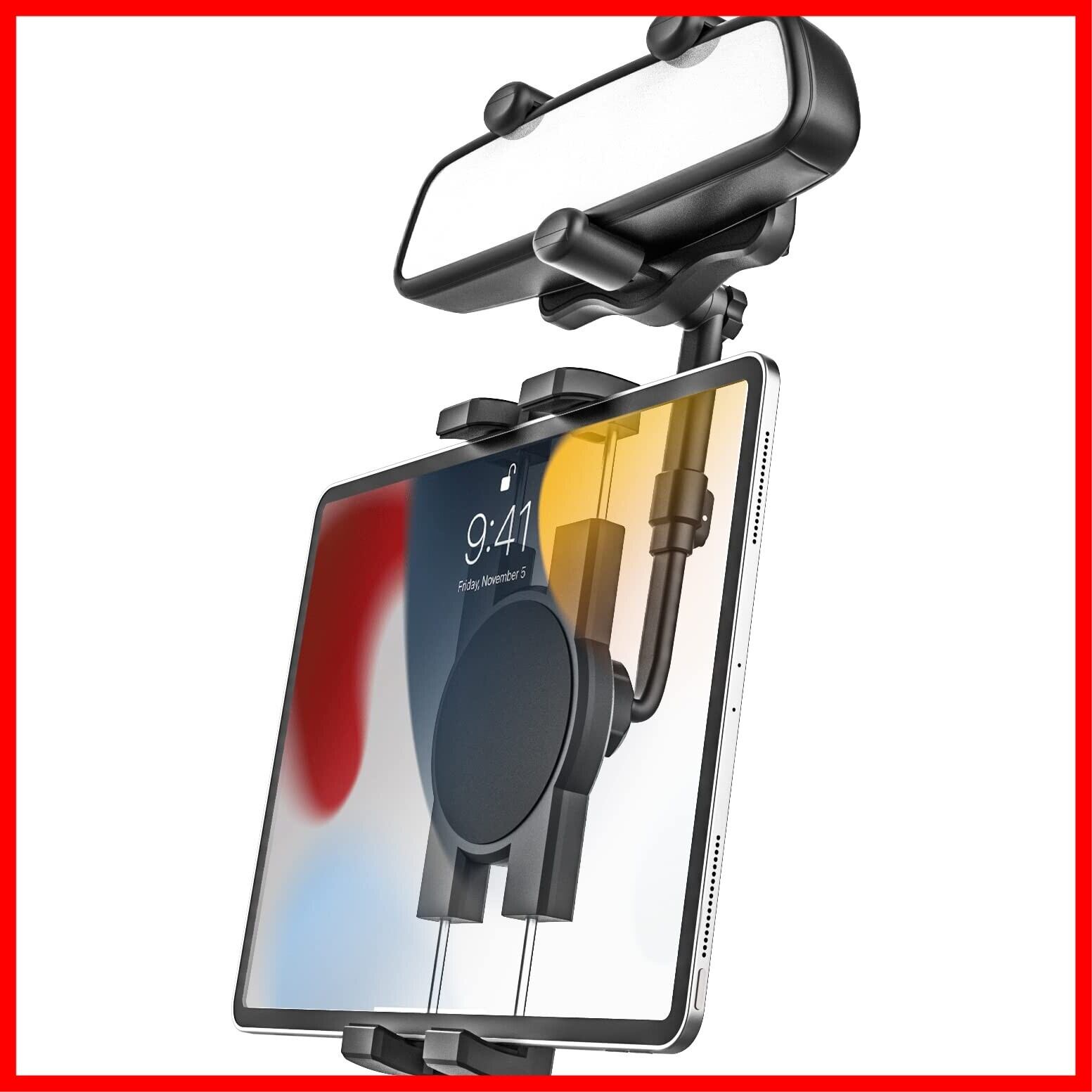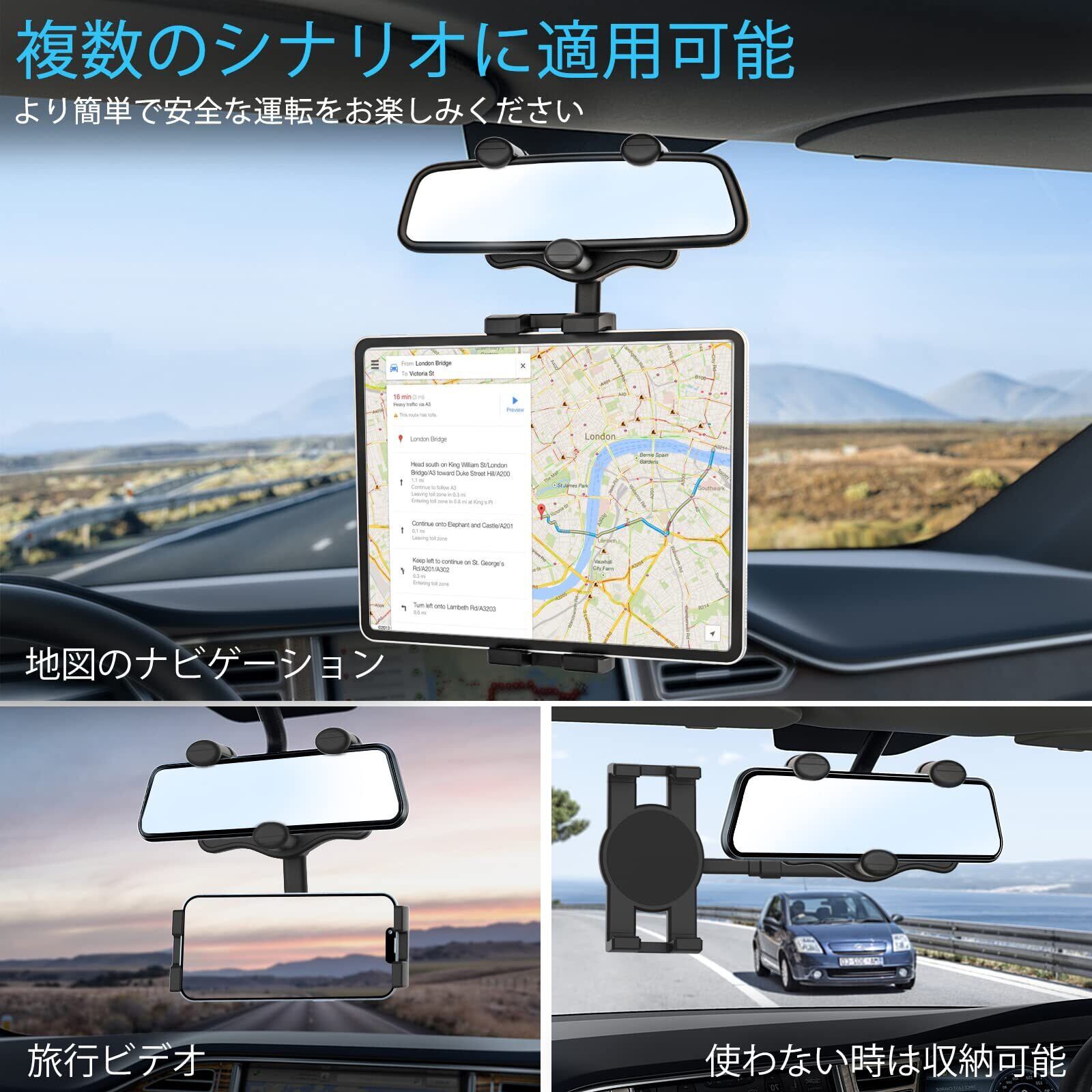 woleyi 車載ホルダー バックミラー タブレットホルダー クリップ式 スマホホルダー ルームミラー取り付け型 スタンド 4.7-11インチ全機種対応 360度回転 日本語説明書付き ミラー用 携帯ホルダー リアビュー ミラー スマートフォンホルダー 対応 iPad Pro 9.7 10.5 インチ/iPad Air Mini 5 4 3 2/iPhone/Samsung Tab/Sony など | hananoki