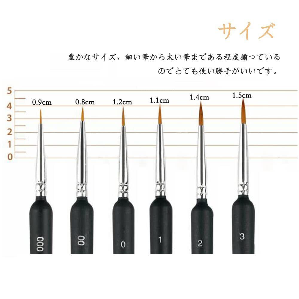 【セット内容】6本セット(#000、#00、#0、#1、#2、#3)豊かなサイズ、細い筆から太い筆まである程度揃っているのでとても使い勝手がいいです。