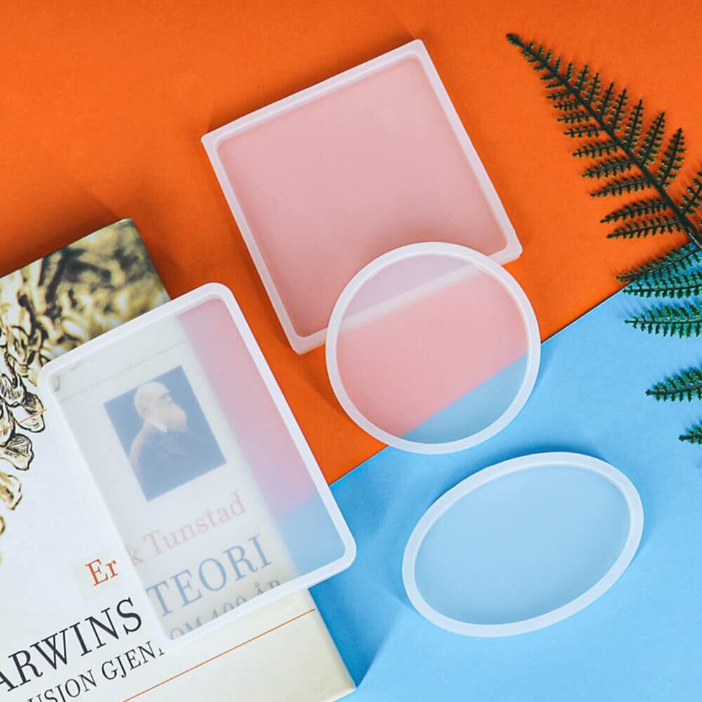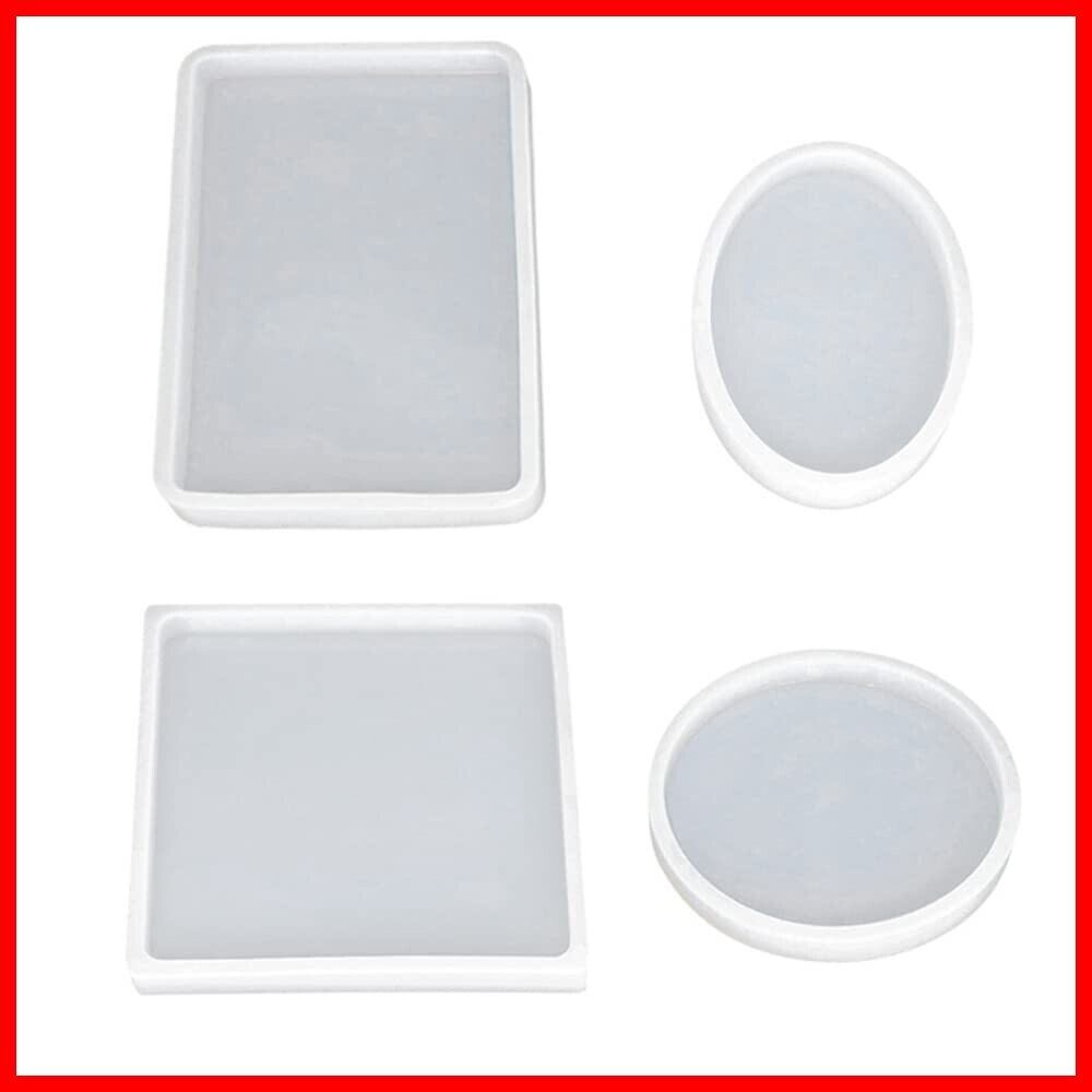 LOYELEY レジン型 シリコンモールド 正方形 長方形 丸 楕円 4個セット ネックレス アクセサリー パーツ 作成 道具 抜き型 エポキシ樹脂 UVレジン 樹脂粘土