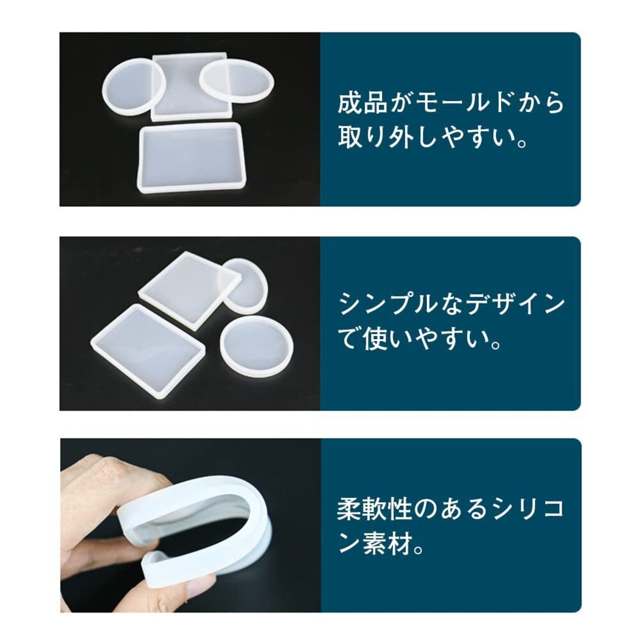 【高品質素材】柔軟性のあるシリコン素材を採用し、成品がモールドから取り外しやすいため、作業がスムーズです。