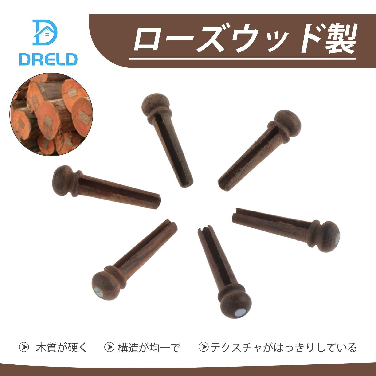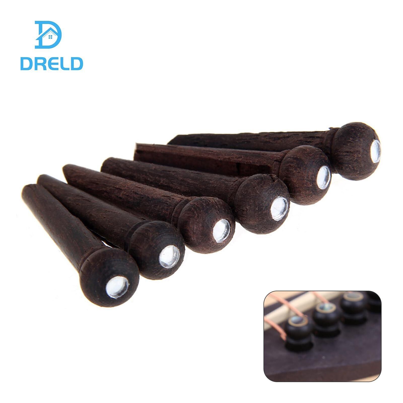 Dreld ギターブリッジピン ローズウッド製 ギター ピン ストリングペグギター アコースティックギターパーツ より良い振動伝達 上部にシェル装飾 耐久性 エンドピン付 フォークギター ギター部品 交換簡単 6個入り | hananoki