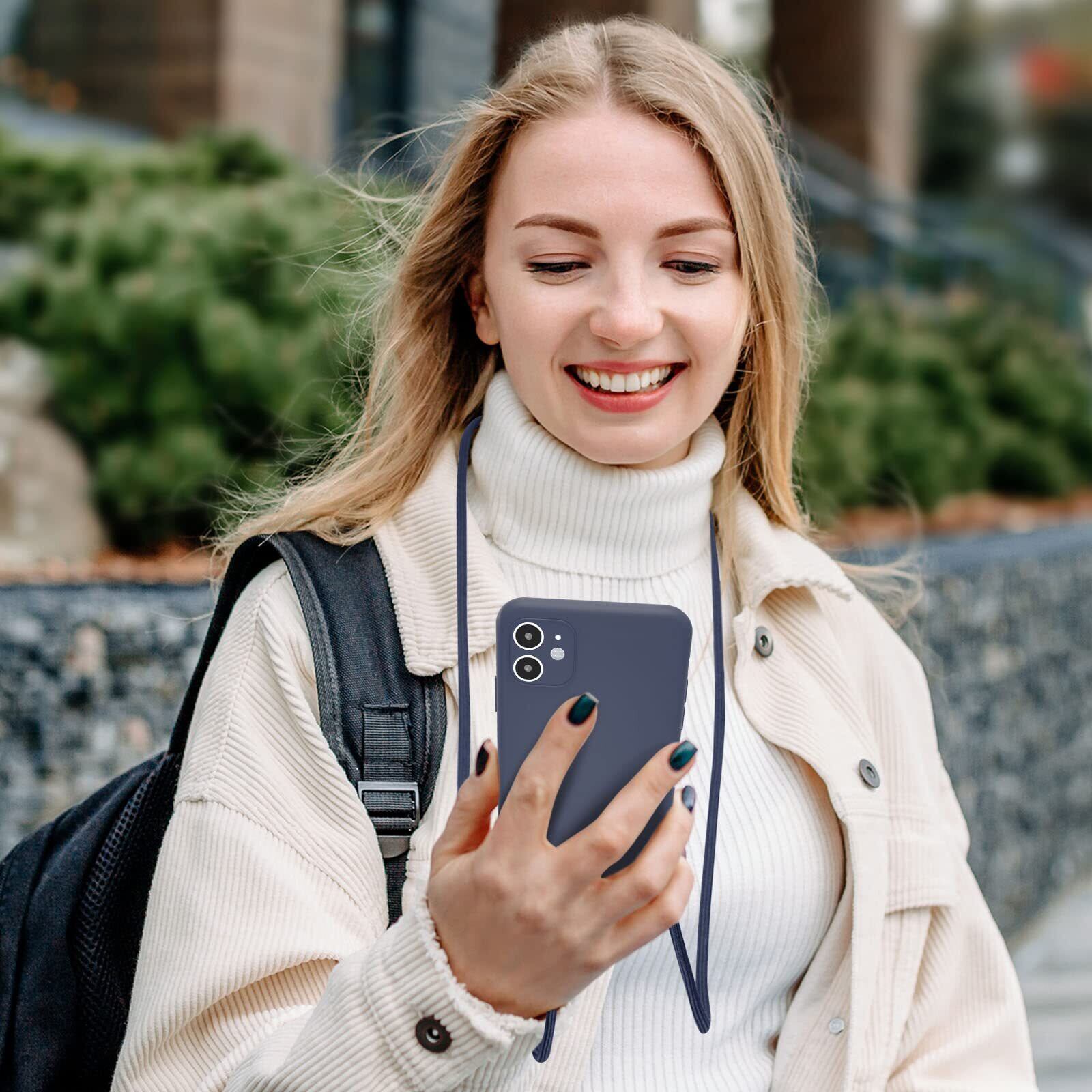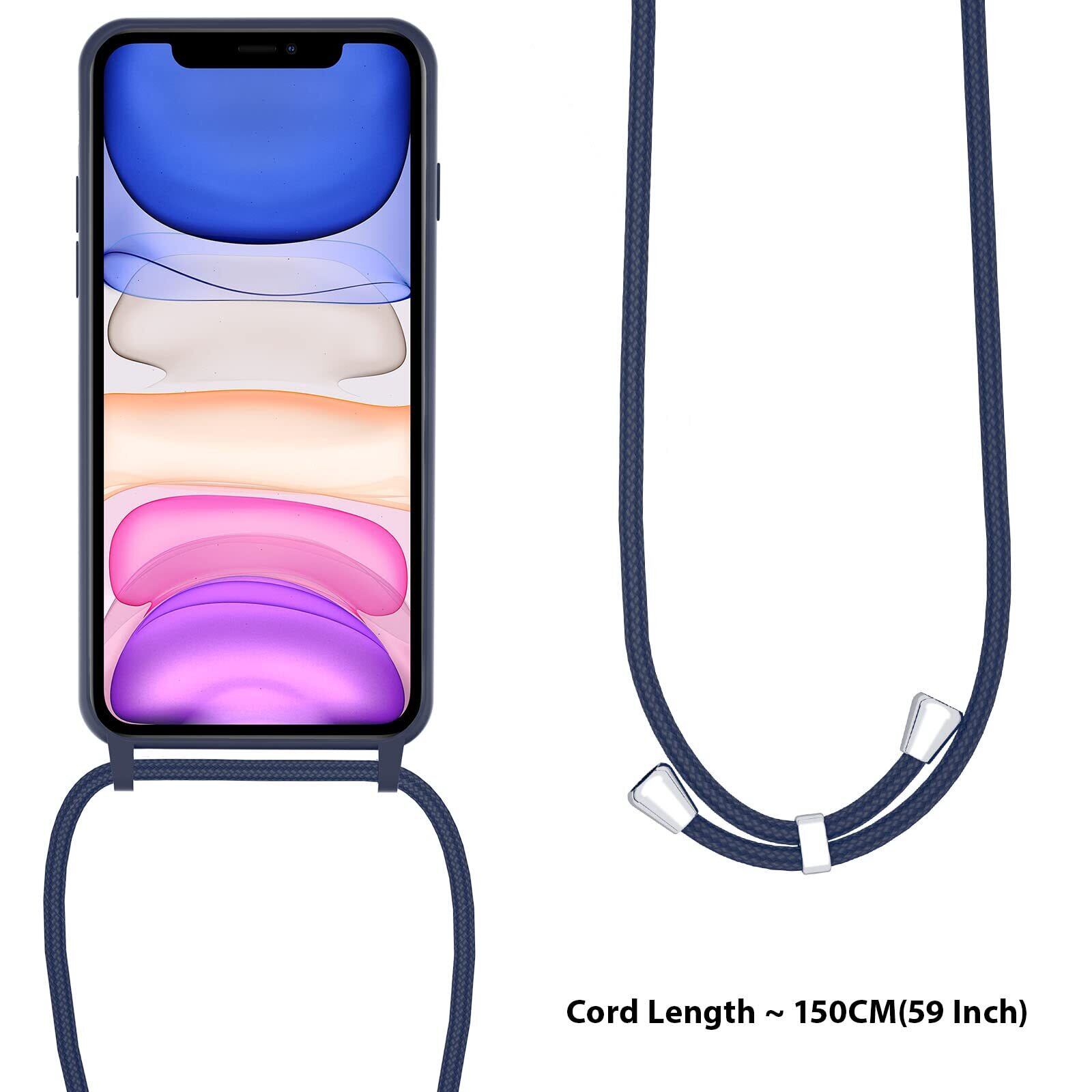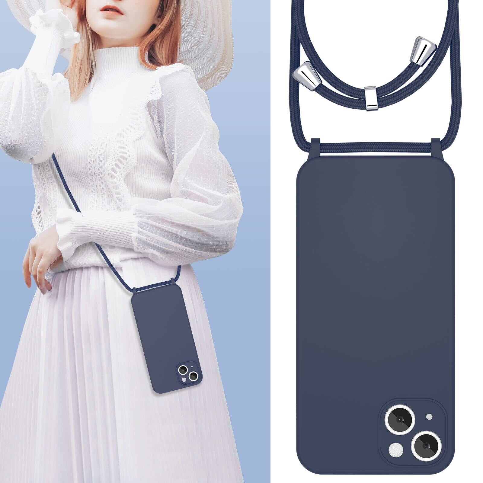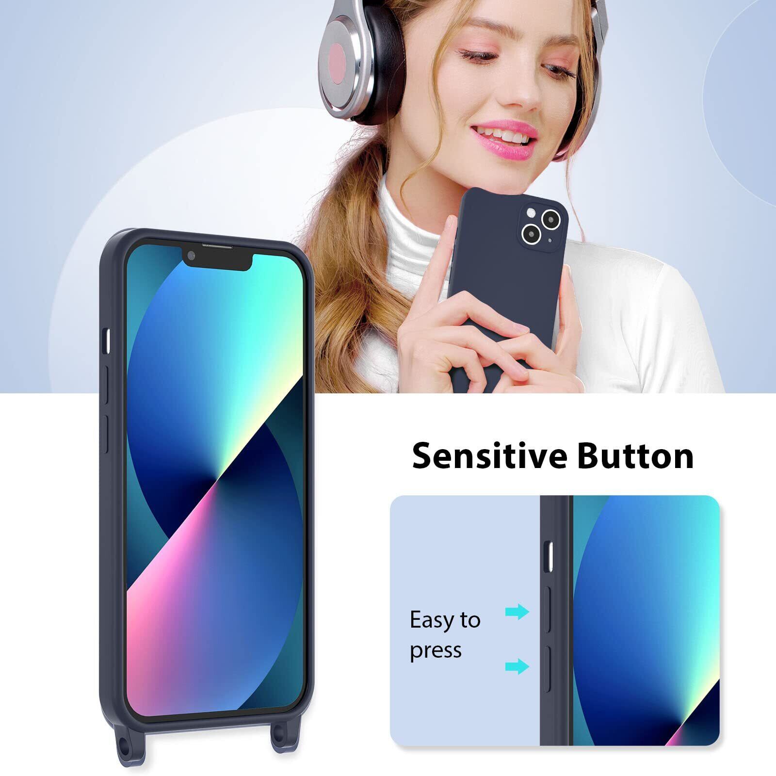 UEEBAI 対応 iPhone 13 用の ケース シリコン 調節可能なケース 肩がけ 首掛け 紐付き ストラップホール付き 薄型 軽量 耐衝撃 カバ- 落下防止 紛失防止 ショルダー バンパー - ダークブルー