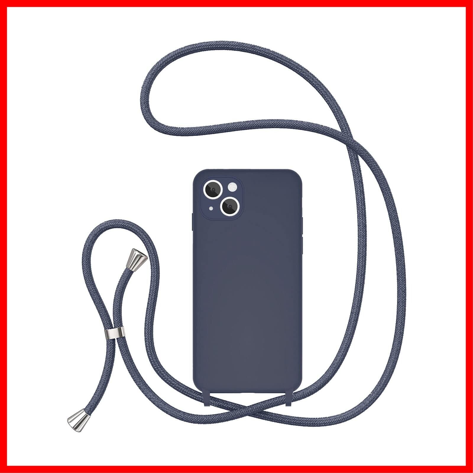 UEEBAI 対応 iPhone 13 用の ケース シリコン 調節可能なケース 肩がけ 首掛け 紐付き ストラップホール付き 薄型 軽量 耐衝撃 カバ- 落下防止 紛失防止 ショルダー バンパー - ダークブルー | hananoki