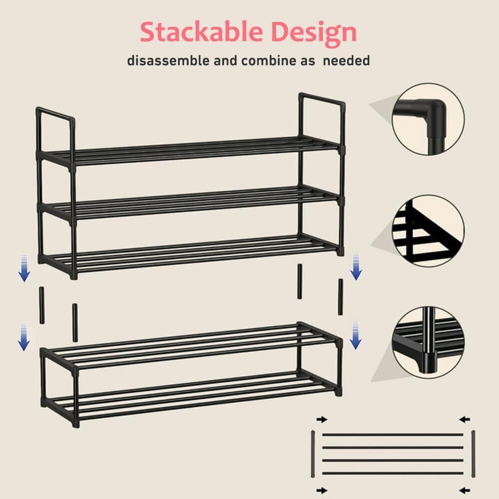 【多目的シューズラック】シューズラックオーガナイザーは、靴を整理して簡単に取り出せるようにするのに最適なソリューションです。クローゼット、玄関、ガレージ、寝室、狭い場所にぴったりフィットします。バッグ、帽子、折りたたんだ服などの他のアイテムを整理するのにも使用できるため、家のどの部屋にも実用的です。