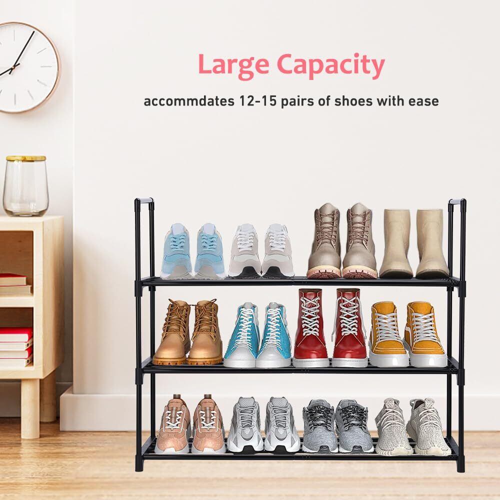 大容量の自立型シューズラック このシューズラックは、高さの異なるデザインで、最大12足の大人の靴を保管でき、ブーツ、ハイヒール、スリッパにフィットします。