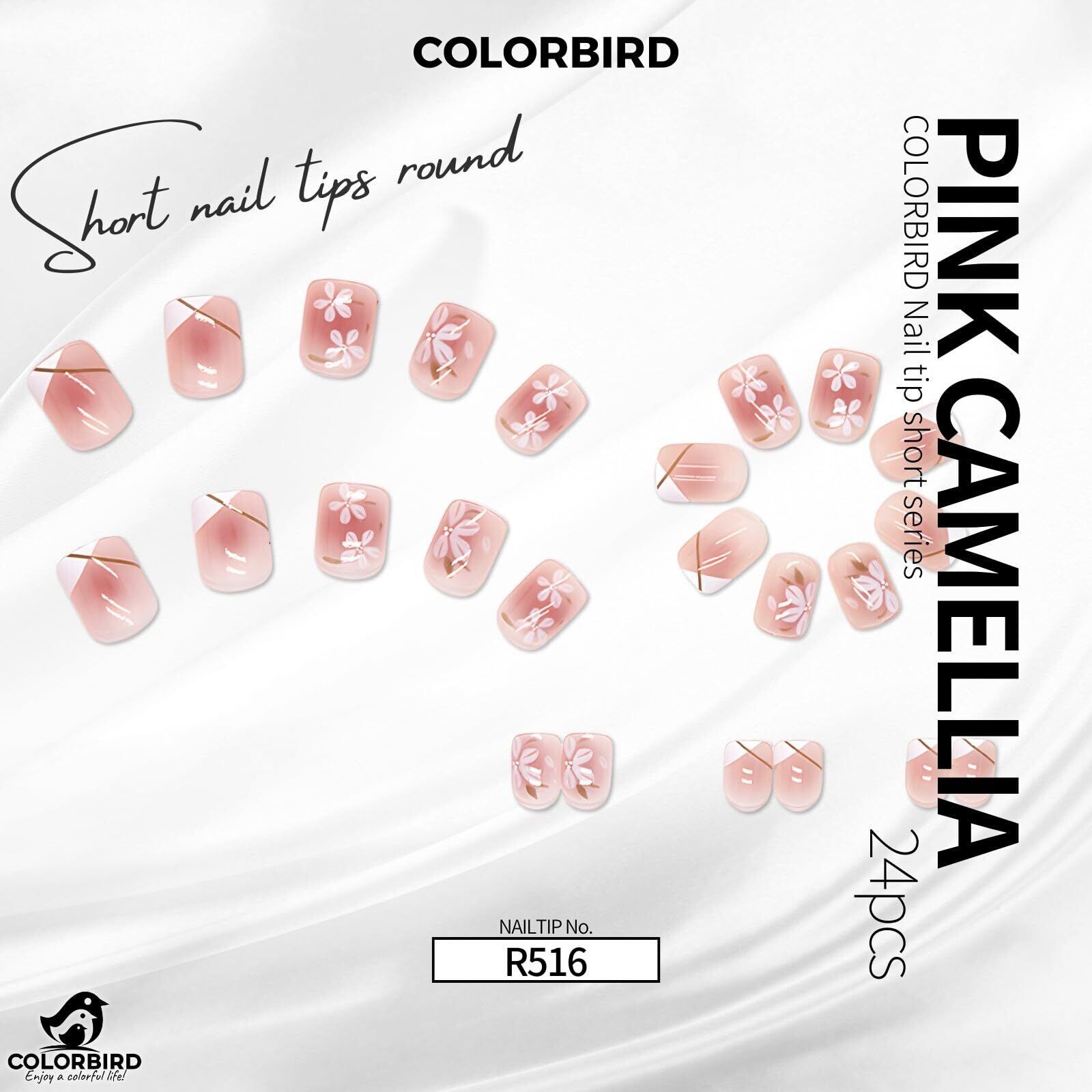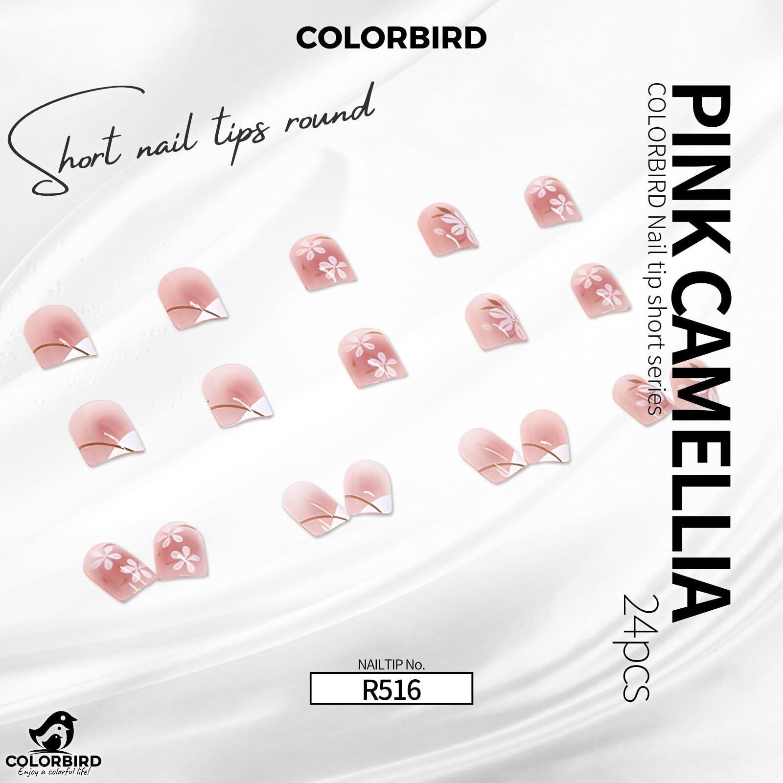 COLORBIRD ネイルチップ ショート 24枚 ピンク 桜 ネイル 付け爪 チップ 短め 可愛い スクエアオフ (R516)