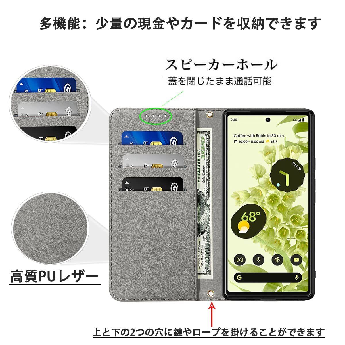 Google Pixel 6A ケース 手帳型 高質PUレザー Pixel 6A カバー Pixel 6A ケース 耐衝撃 内蔵マグネット開閉式 ベルトなし スマホケース おしゃれ カードポケット スタンド機能 便利 スプラット同梱 携帯ケース グレー | hananoki