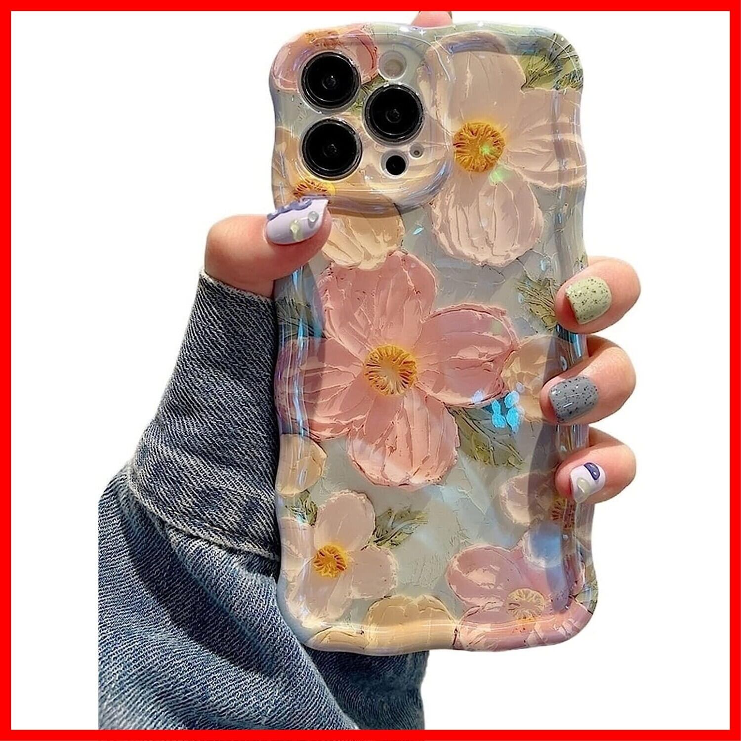 【花柄デザイン ▪ フィット感】背面にカラフルな油絵の花柄、色味が優しく、いつものスマホに上品さをプラス。側面が透明なデザインからiPhone 13 Proカラーが見えるデザインで、本来の美しさと高級感をそのままに映り出し。