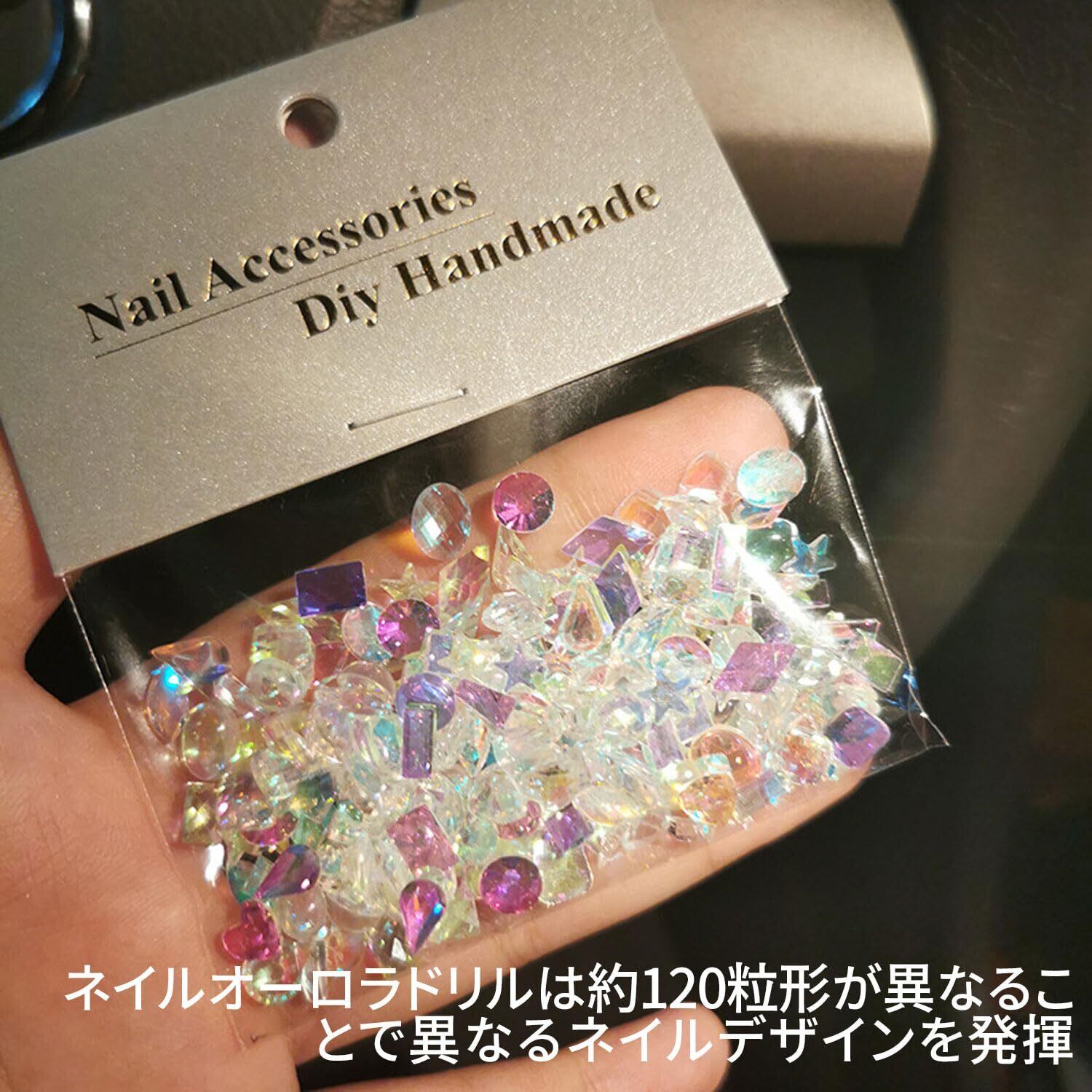 ネイルパーツ ネイル ラインストーン 約120個の小さなオーロラグリッター3D平らな形のネイルストーンのセットDIYカラフルなオンブレネイルアートデコレーション。