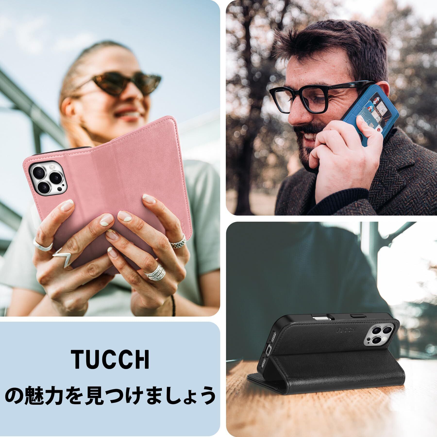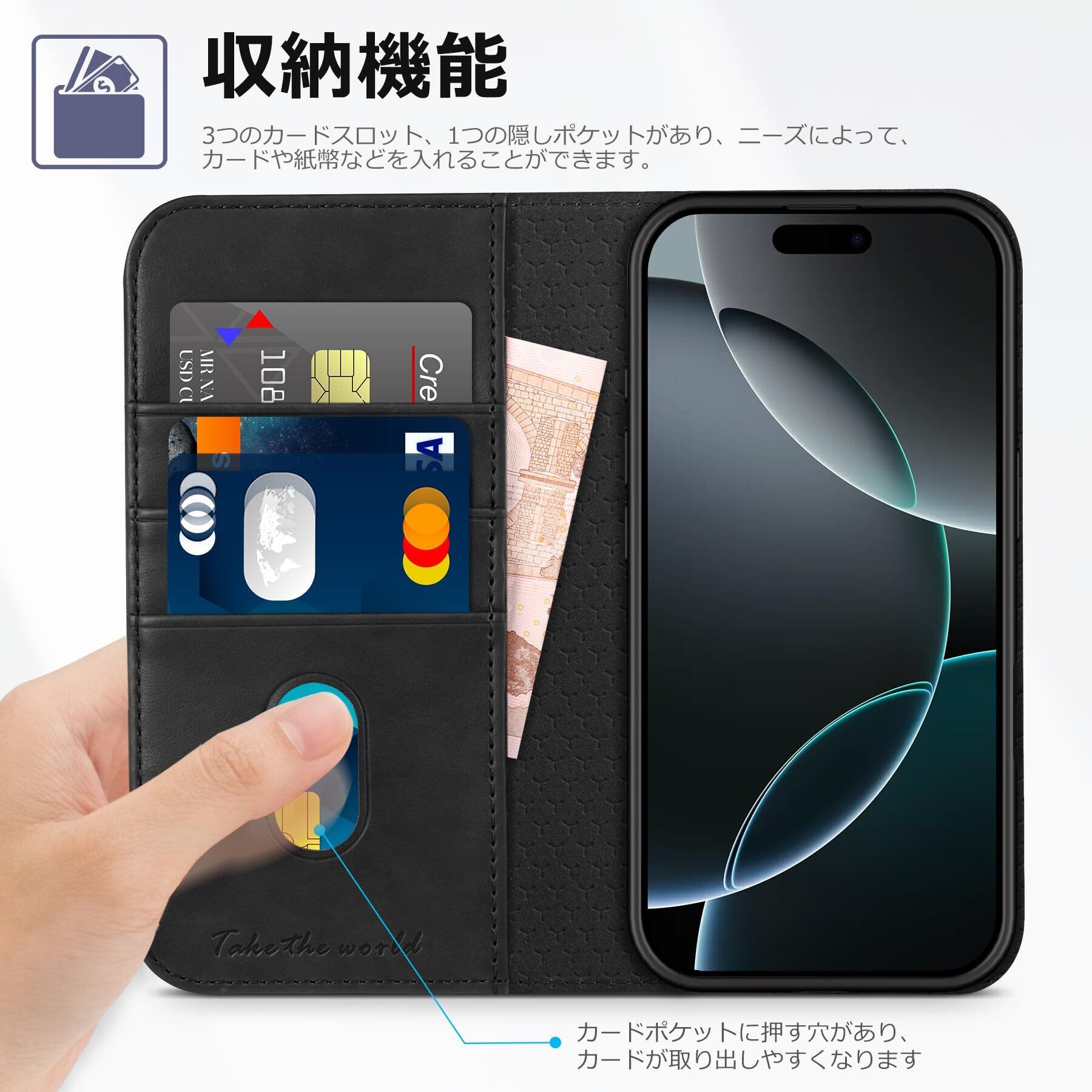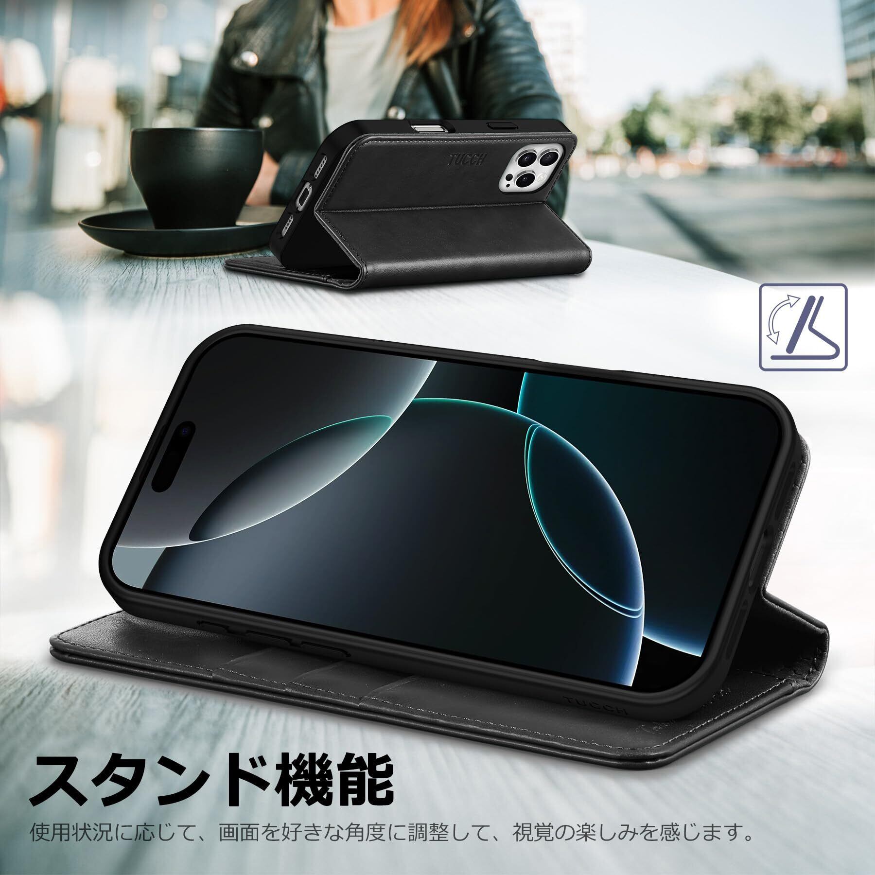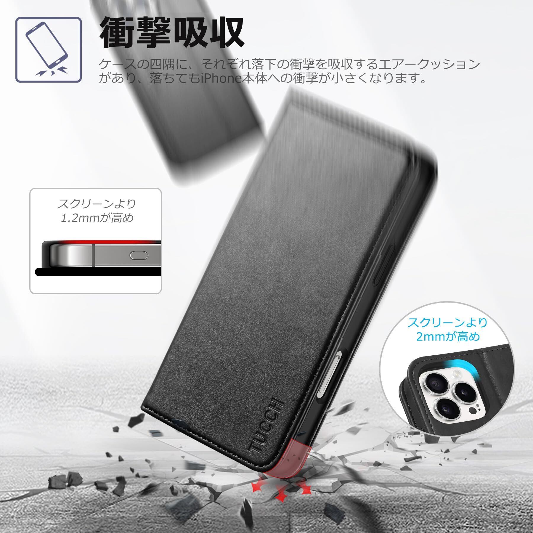 TUCCH iPhone 16 Pro Max 対応 ケース 手帳型 アイフォン16プロマックス手帳型ケース カード収納 横置きスタンド機能 [RFIDブロッキング] 衝撃吸収 全面保護 PU合皮 TPU素材 あいふぉん16プロマックススマホカバー 2024年発売 6.9 インチ アイフォーン16プロマックス 対応 ブラック