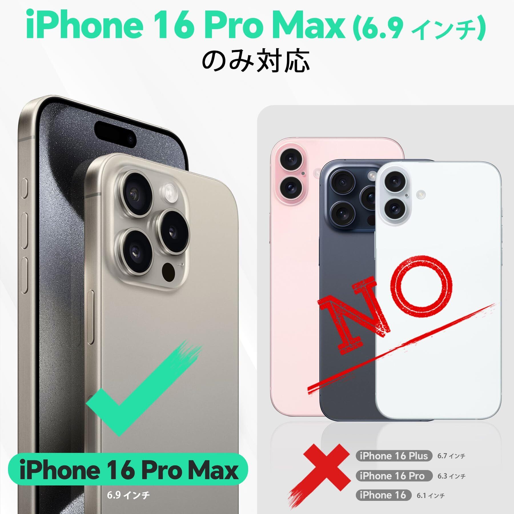 【適用型番】アイフォン16プロマックス (2024年発売6.9インチ)のみ対応します。他の機種は対応しません。注文間違いを避けるために、ご携帯機種を十分ご確認の上、ご購入ください。