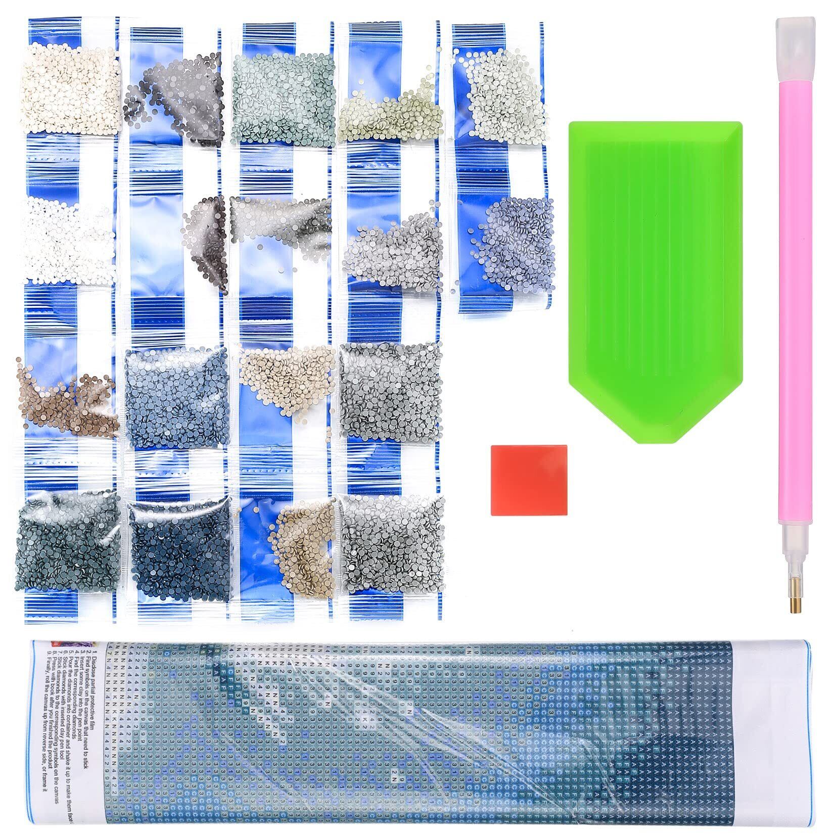 2.数字または文字に従って対応するダイヤモンドバッグを見つけ、ダイヤモンドをトレイに入れ、振ってください。