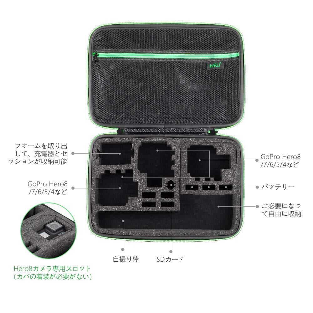 HSU gopro収納ケース GoPro Hero13/12/11/10/9/8/7/6/5対応 及び他のアクションカメラ 収納バッグ アクセサリー収納 防塵 防水 アクションカメラに対応 (大 グリーン | hananoki