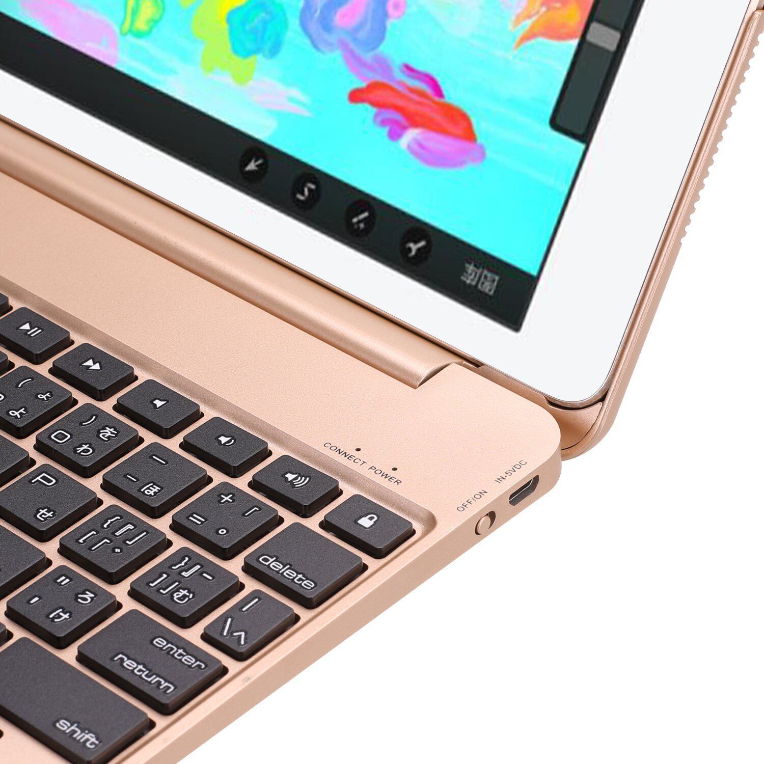 ピーシーエーテック iPad 9.7 (2018第6世代) / iPad 9.7 (2017第5世代) / iPad air 専用 Bluetooth キーボードケースPCカバー Macbookに変身 日本語かな入力対応 (ゴールド) | hananoki